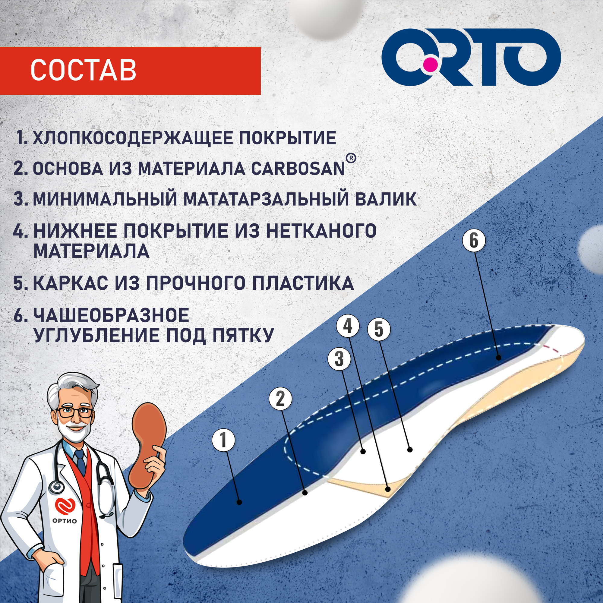 ORTO Стельки ортопедические со слоем вспененного латекса ORTO SPORT, Размер 41/42