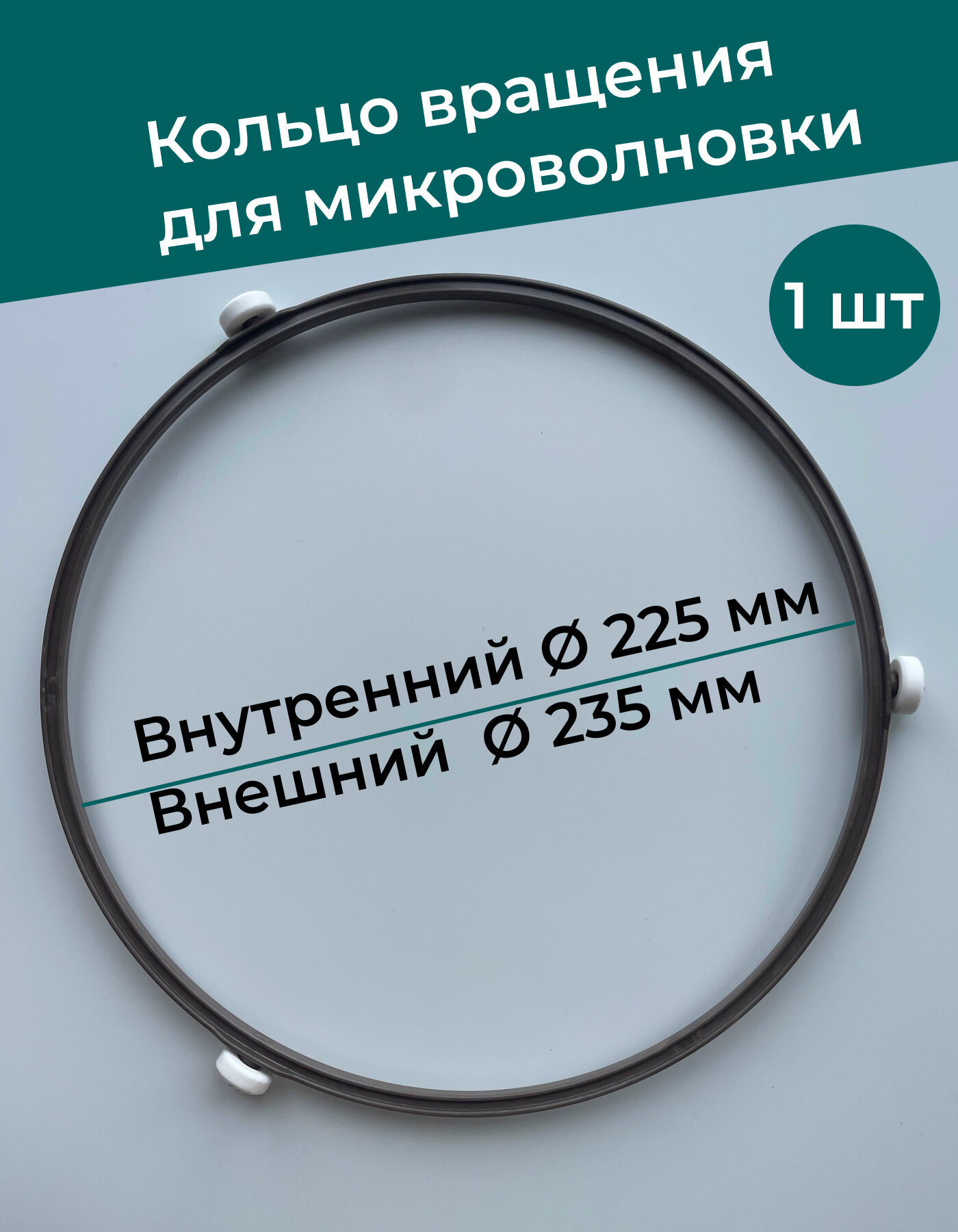 EURO Kitchen Кольцо вращения тарелки Eurokitchen для СВЧ-печи, диаметр кольца 222 мм, диаметр ролика 14 мм