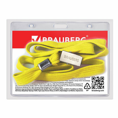 Бейдж горизонтальный Brauberg, 60х90мм, прозрачный, мягкий пластик, на желтой ленте 45см (231154), 20шт.