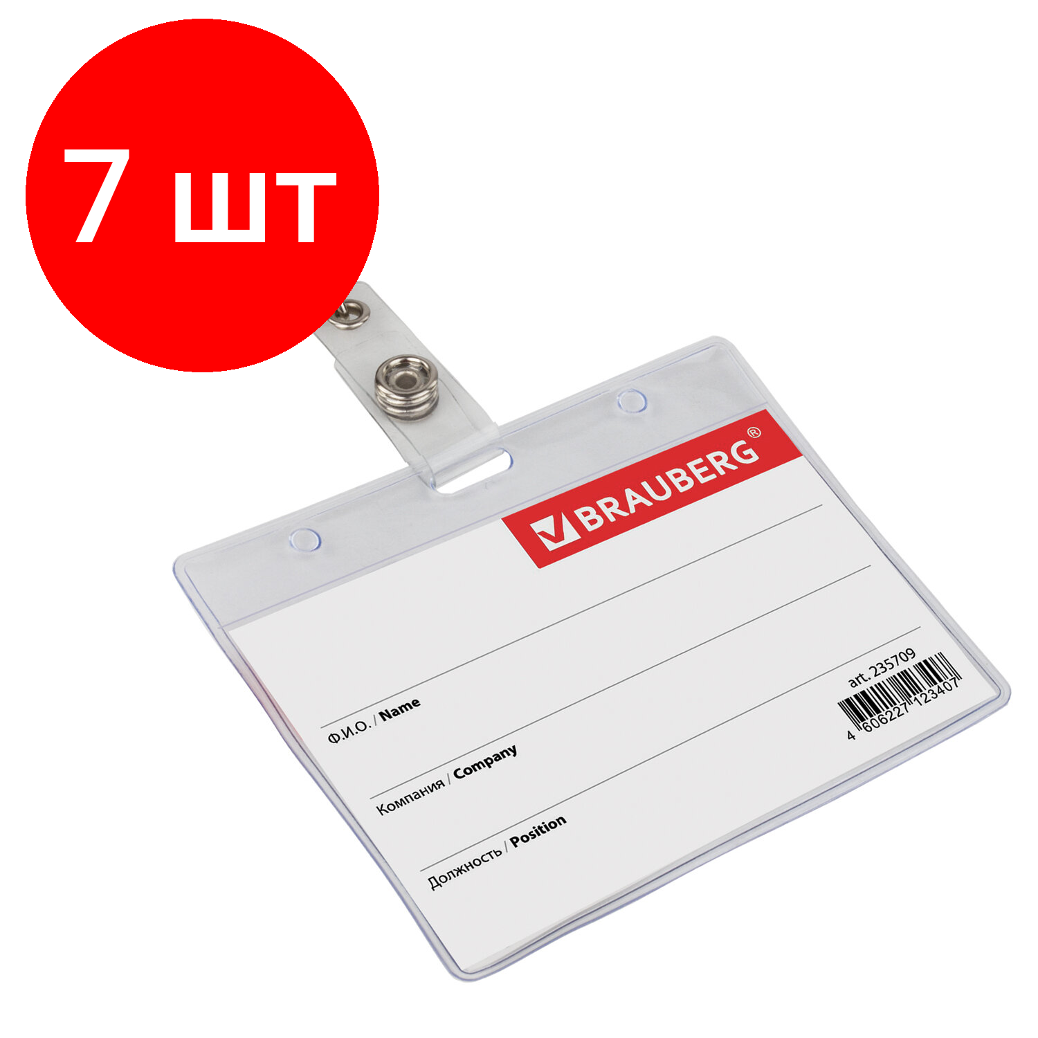 Бейдж горизонтальный (60х90 мм), с держателем-рулеткой 70 см, BRAUBERG, 235709