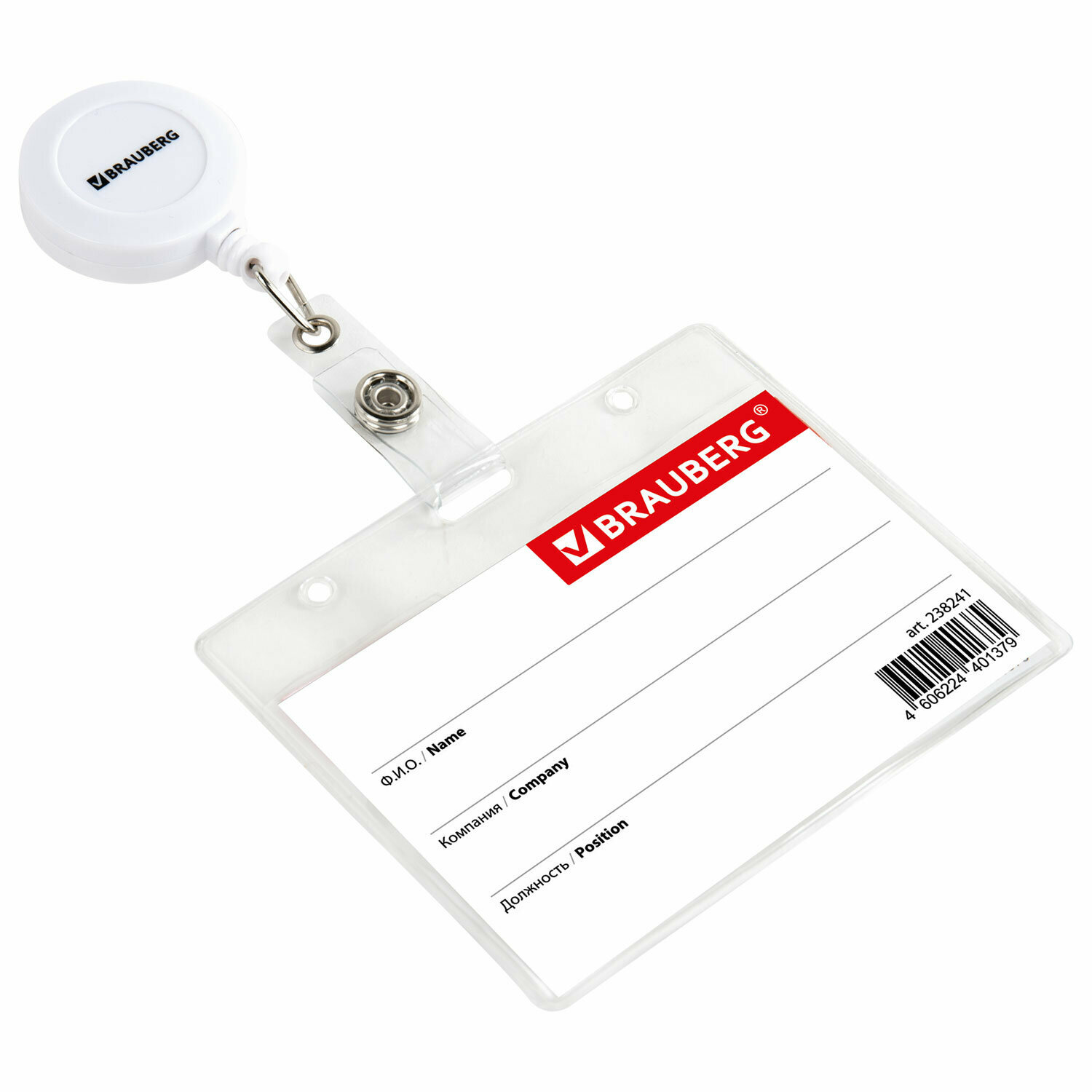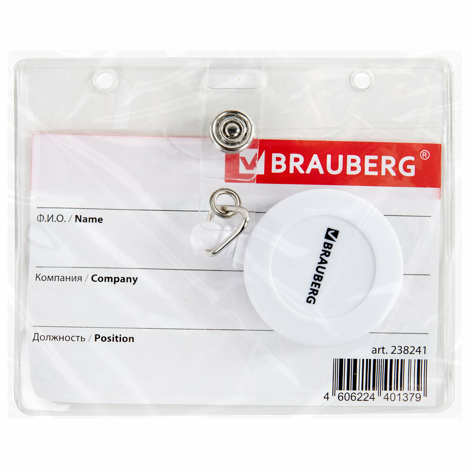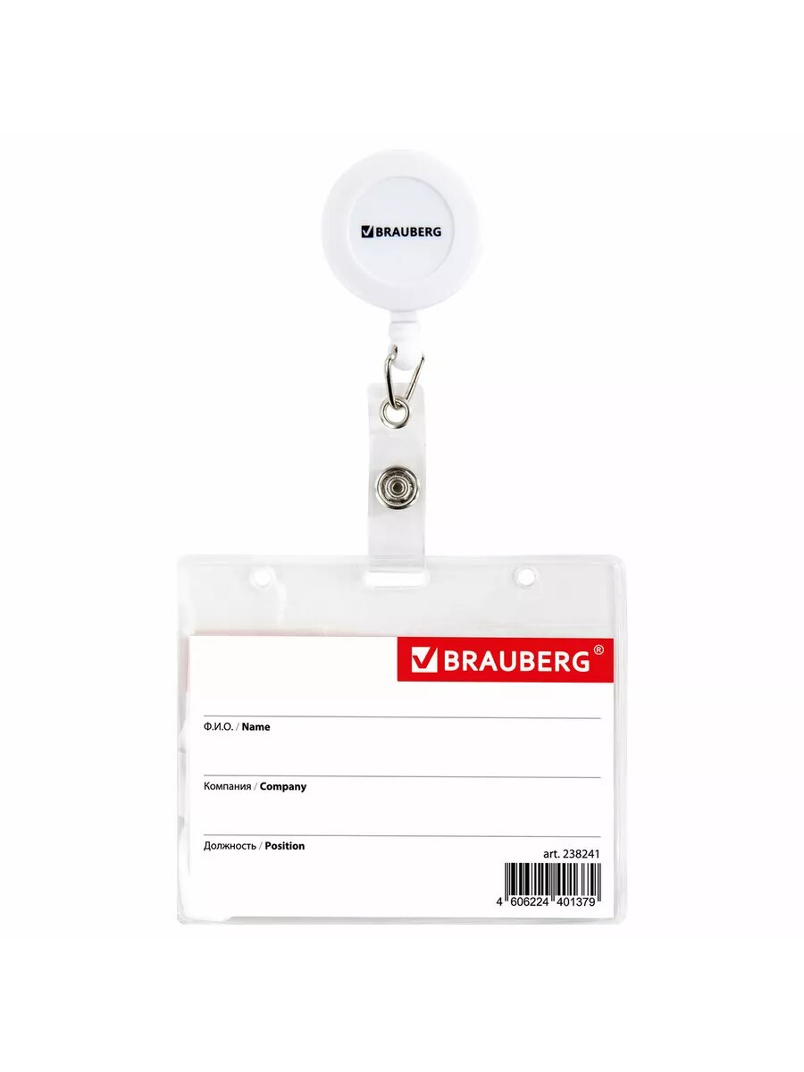 Бейдж горизонтальный (60х90мм), с держателем-рулеткой 70 см, BRAUBERG