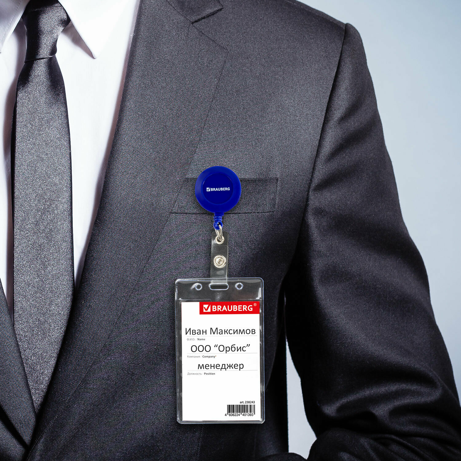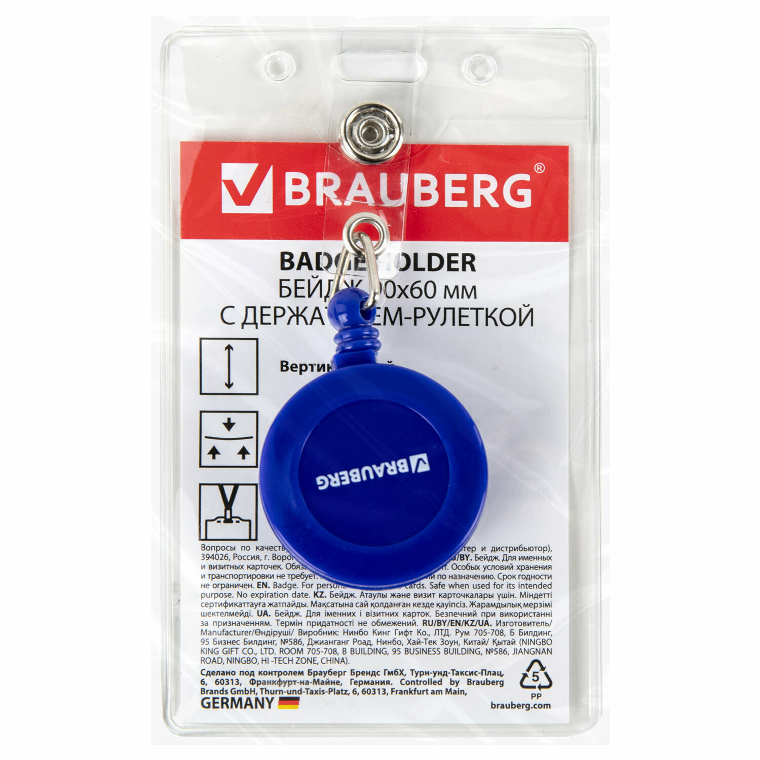 Бейдж для пропуска с рулеткой держателем 70 см, бейджик вертикальный (90х60 мм), синий, BRAUBERG, 238244 интересное: