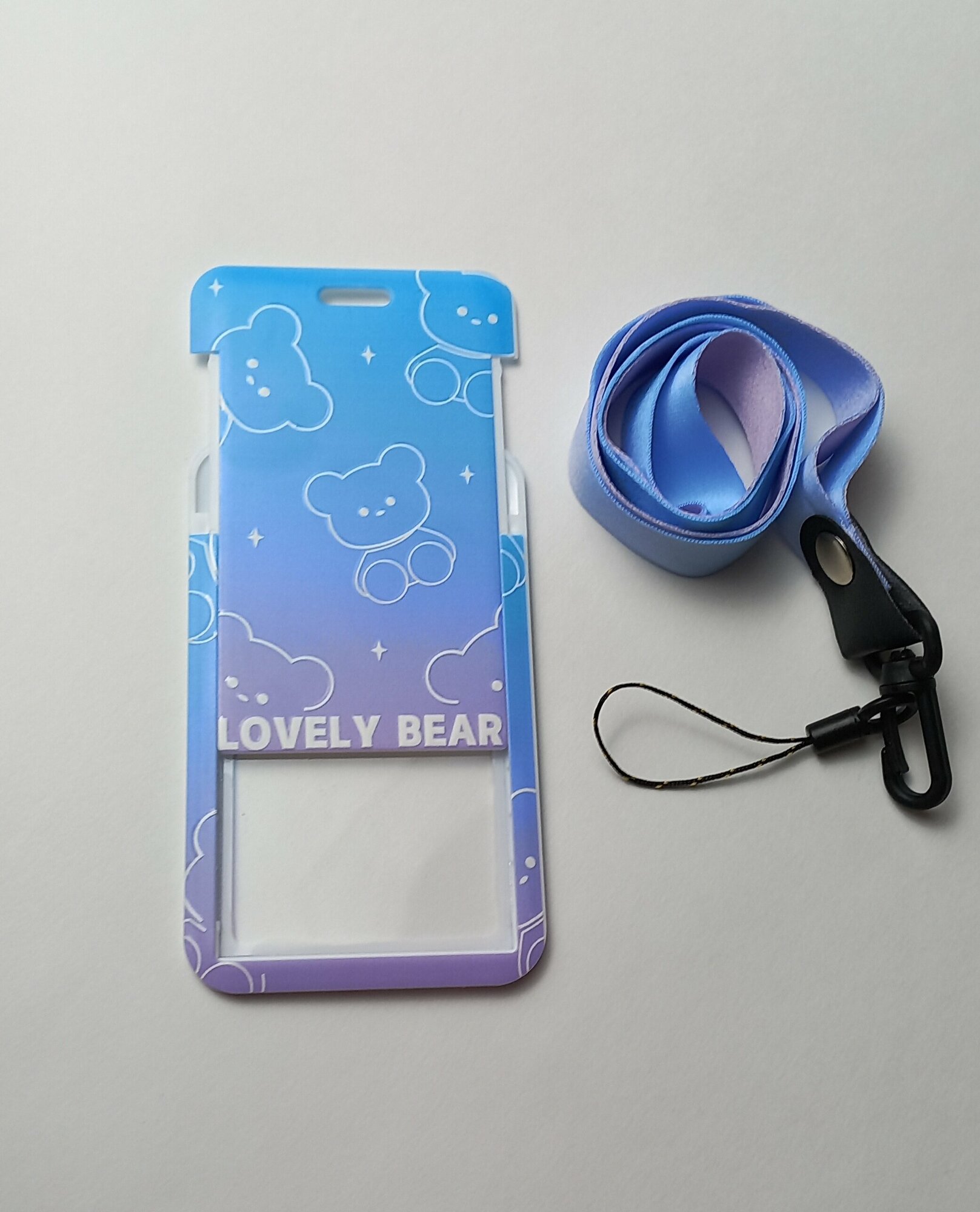Чехол вертикальный для бейджа, карты, пропуска с лентой (радужный/голубой) интересное: