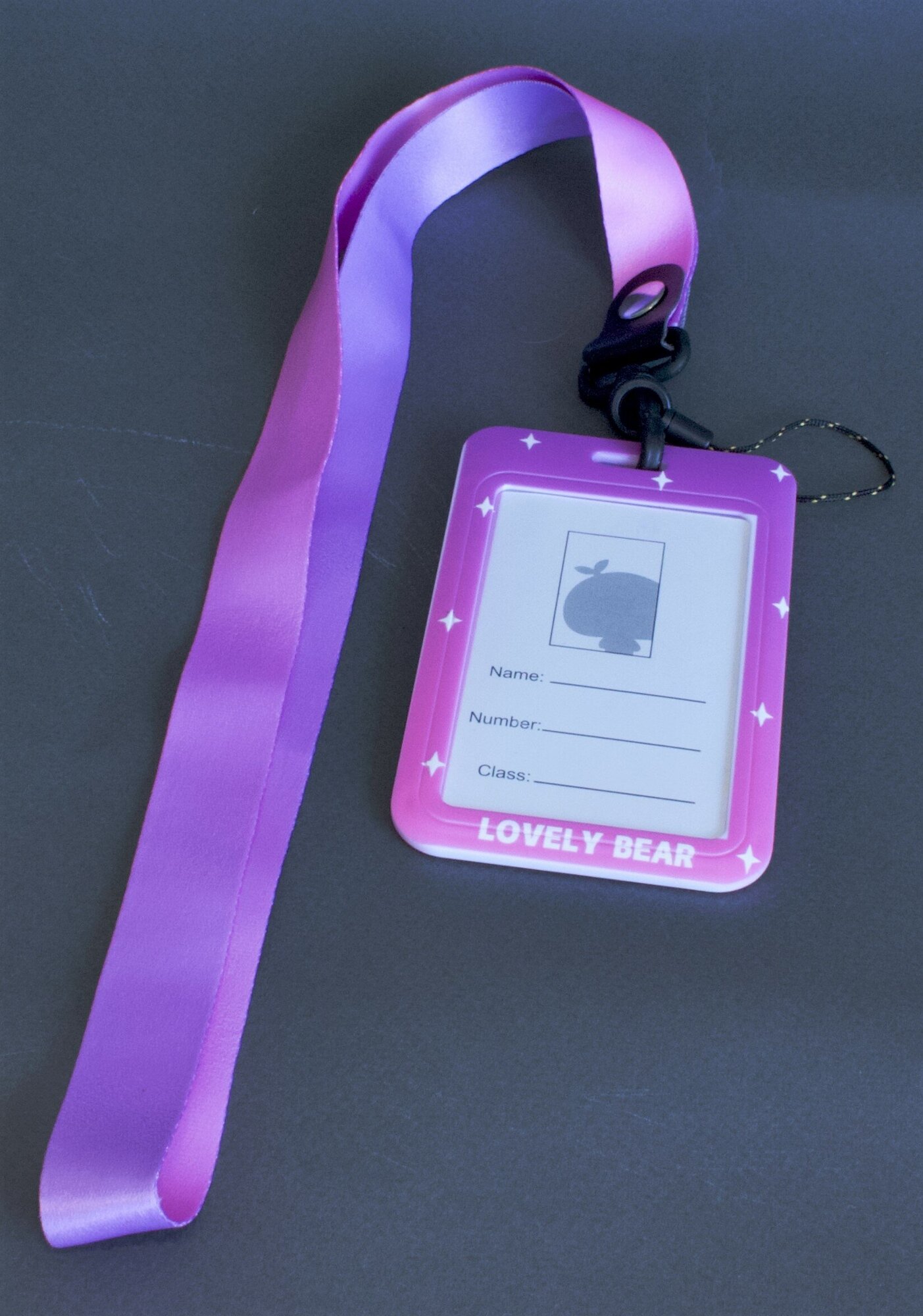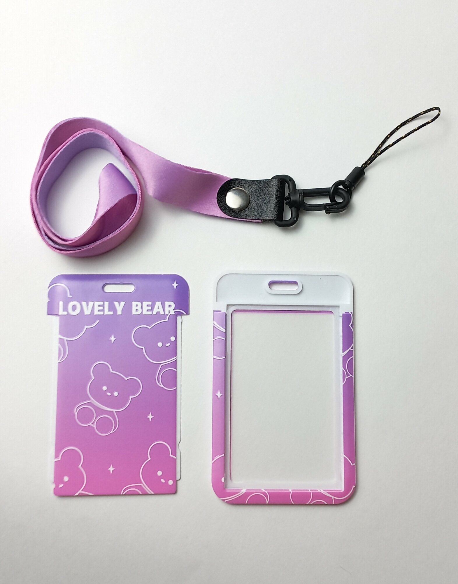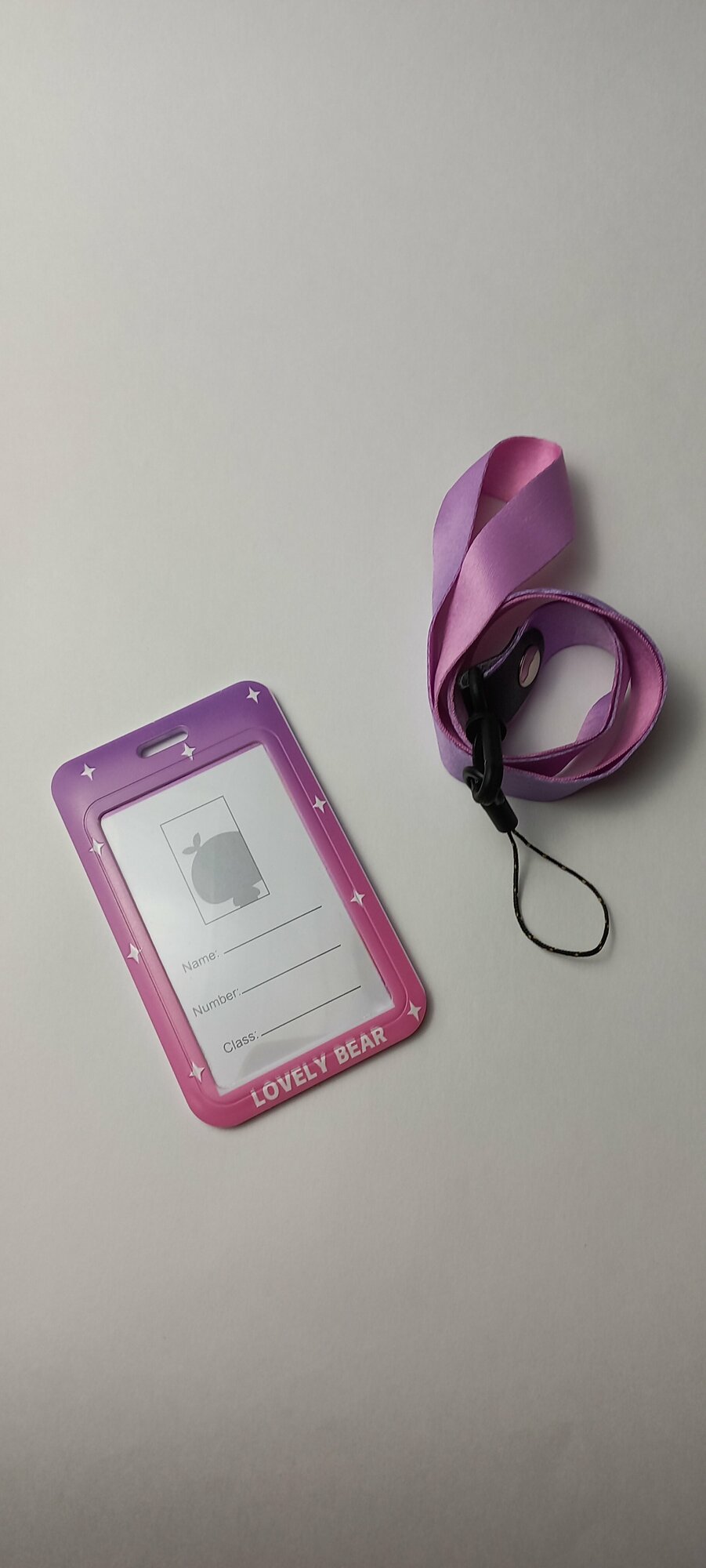 Чехол вертикальный для бейджа, карты, пропуска с лентой (радужный/сиреневый) интересное: