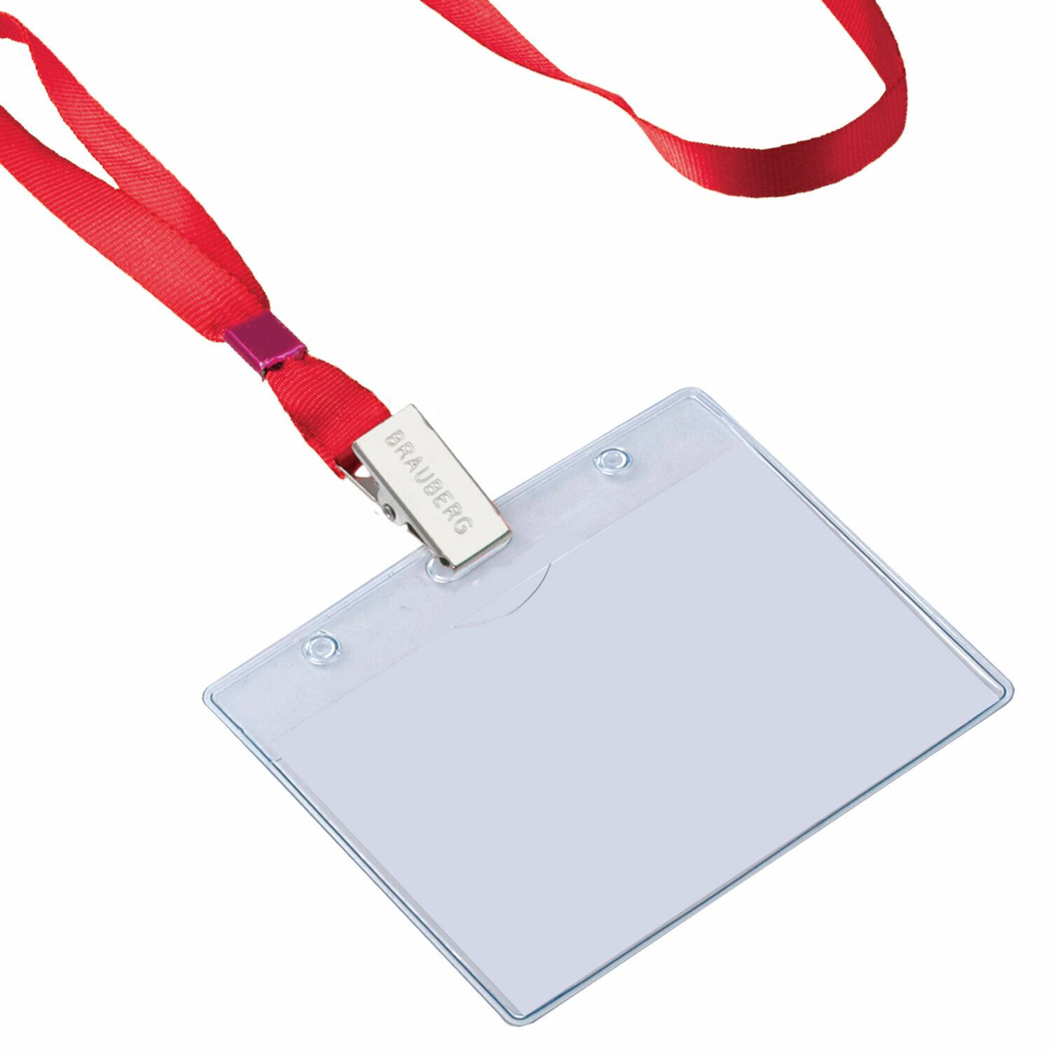 Купить Лента для бейджей, 45 см, металлический клип, красная, BRAUBERG, 235734
