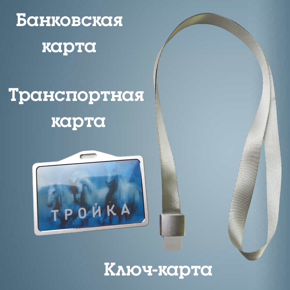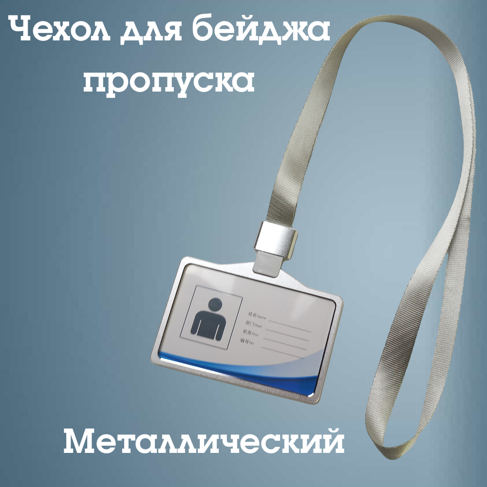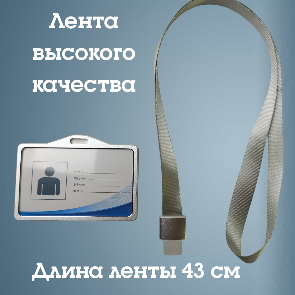 Чехол для пропуска, бейдж на ленте, бейдж для офиса горизонтальный (серебряный) интересное: