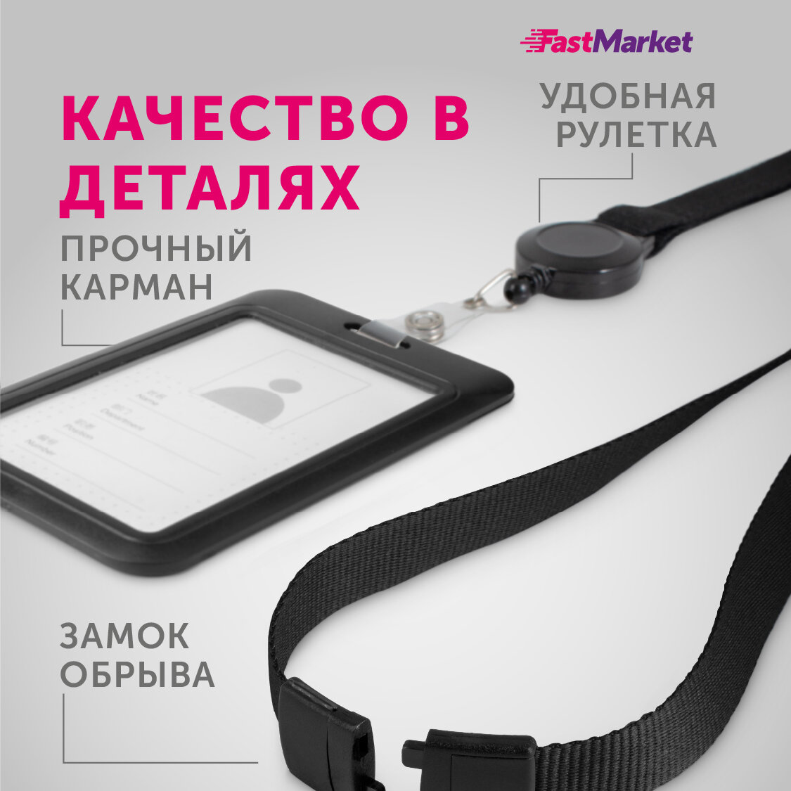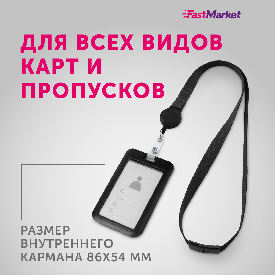 Купить Бейджик для пропуска FastMarket, чехол для карты школьника, бейдж на ленте, держатель с рулеткой в школу, черный