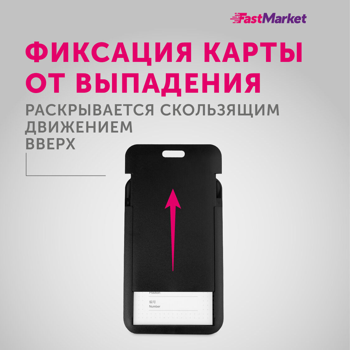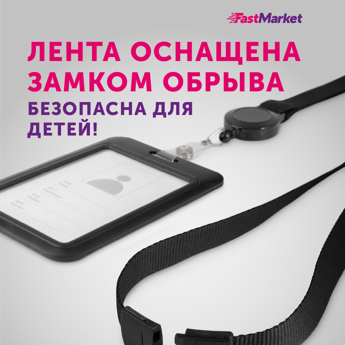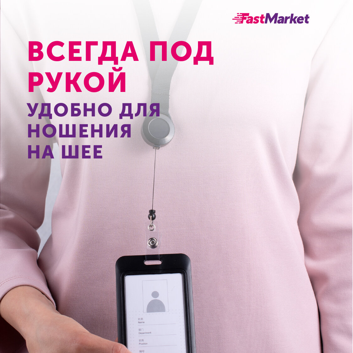 Бейджик для пропуска FastMarket, чехол для карты школьника, бейдж на ленте, держатель с рулеткой в школу, черный интересное: