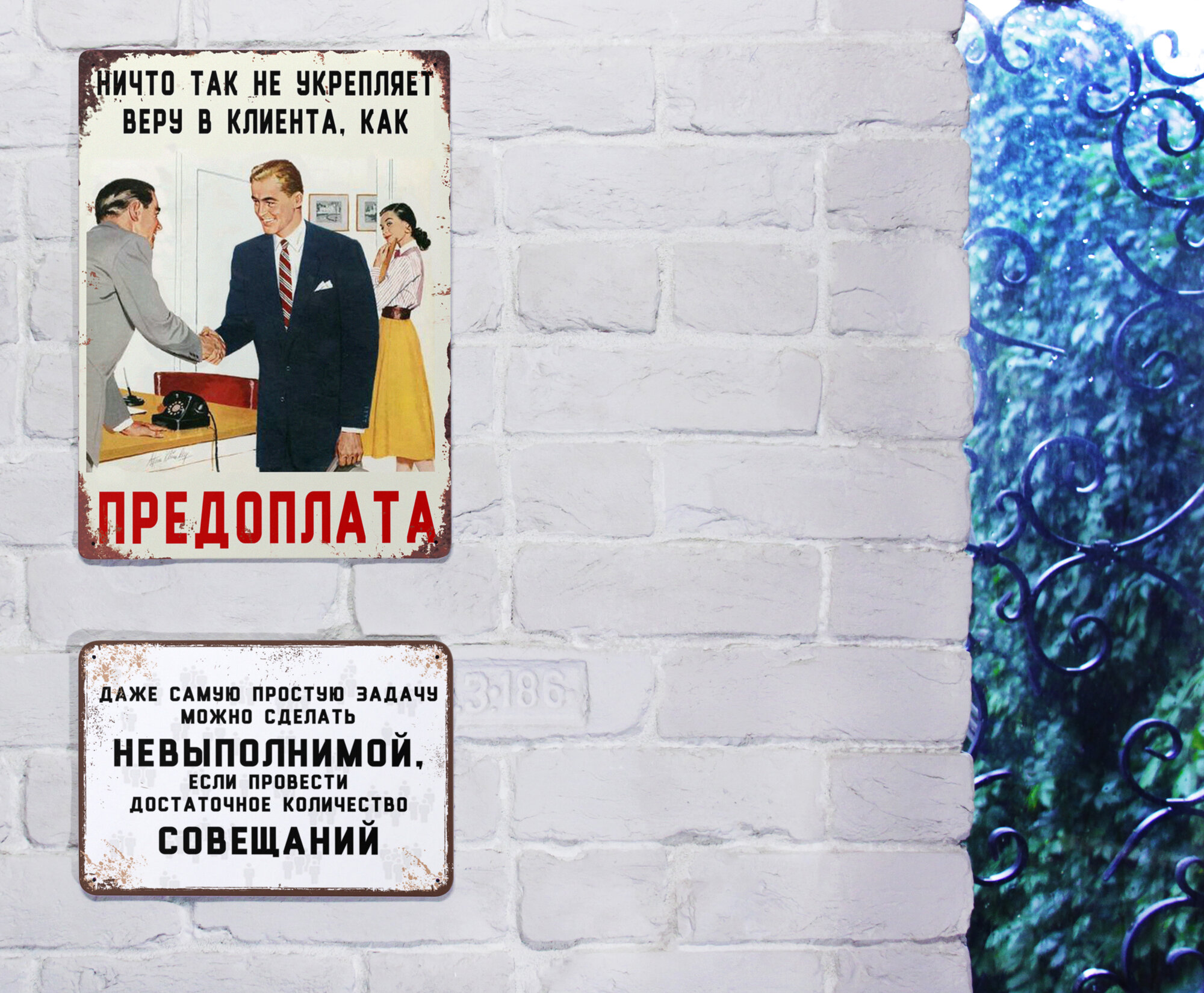 Прикольная табличка для офиса и работы Доверие и Предоплата, подарок колеге, металл, 20х30 см. интересное: