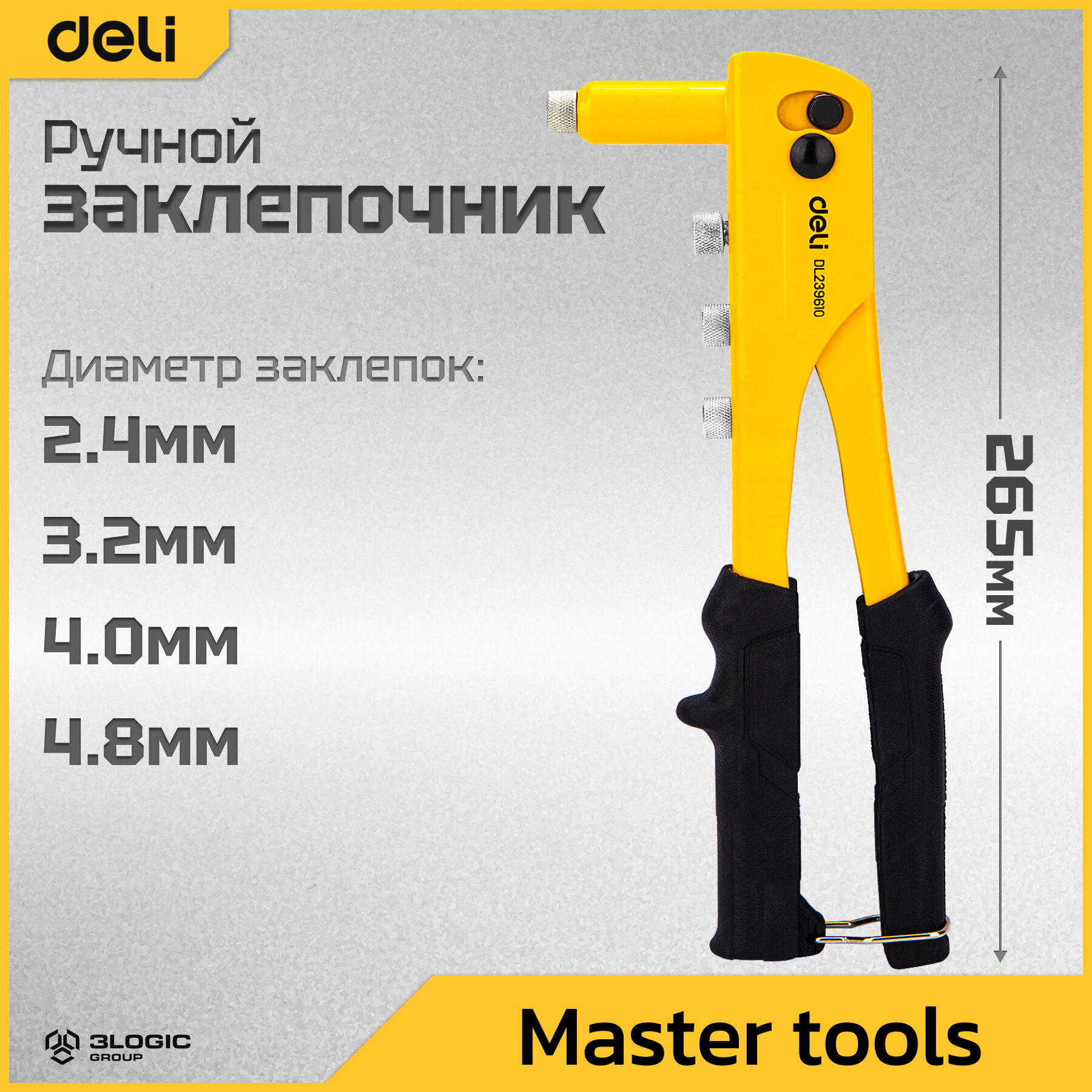 Ручной заклепочник 265мм Deli DL236910 (сталь 20cr, размер заклепок 2.4, 3.2, 4.0, 4.8 мм) интересное: