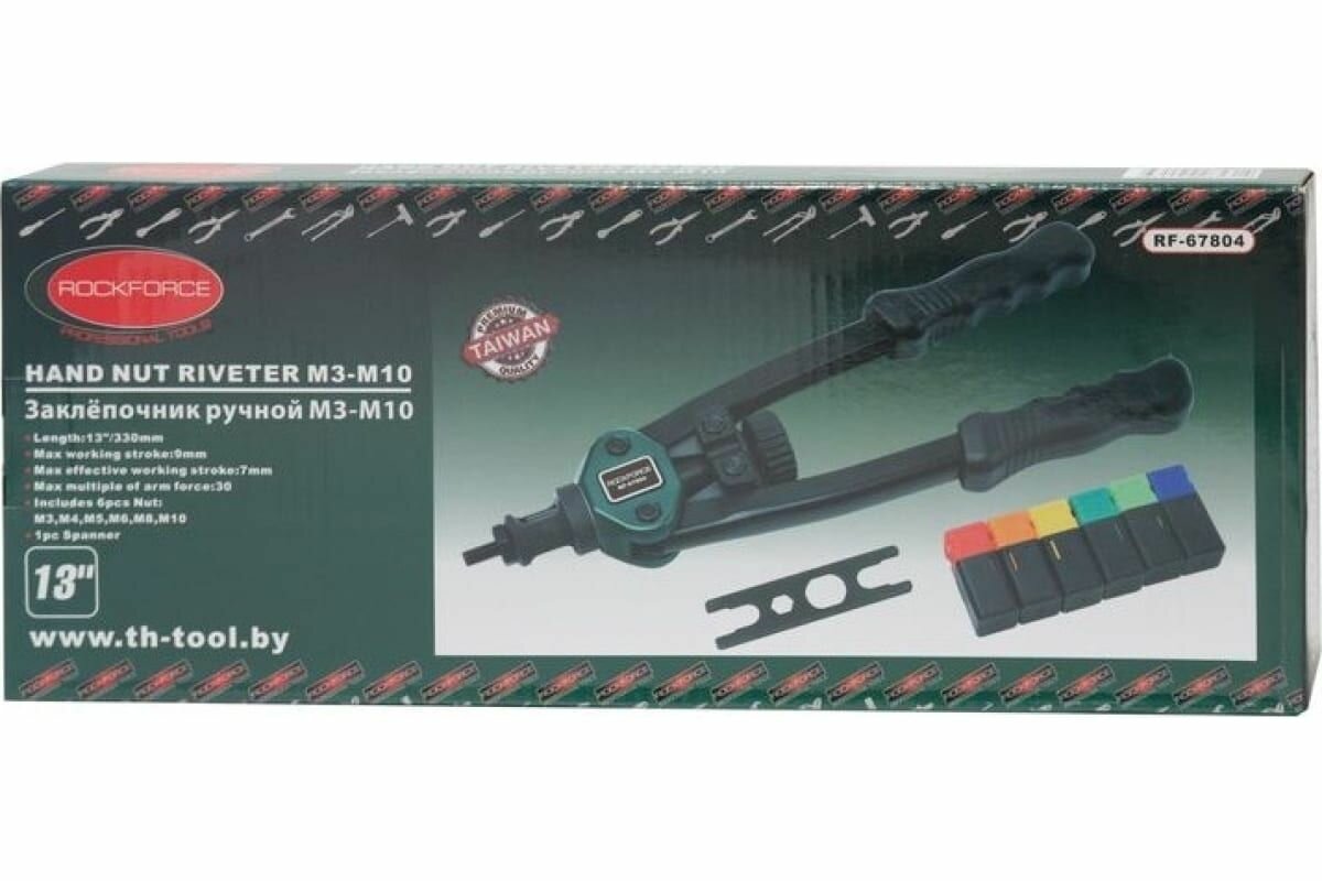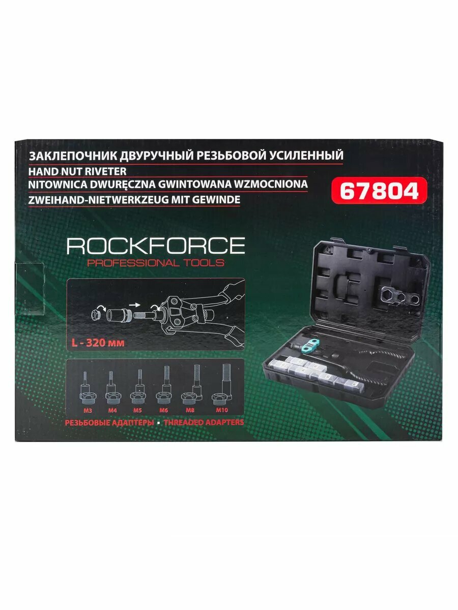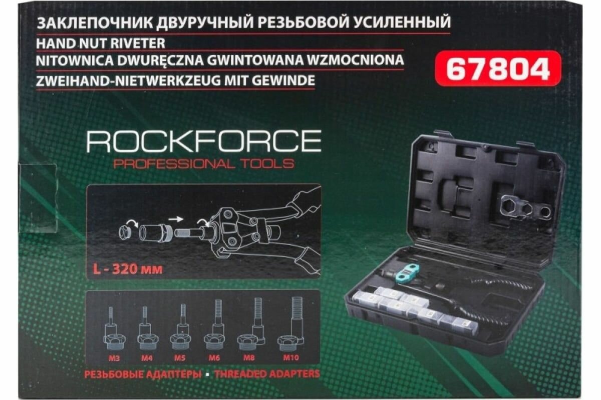 Заклепочник RF-67804 двуручный резьбовой усиленный (L - 320мм, резьбовые адаптеры - М3, М4, М5, М6, М8, М10) ROCKFORCE интересное: