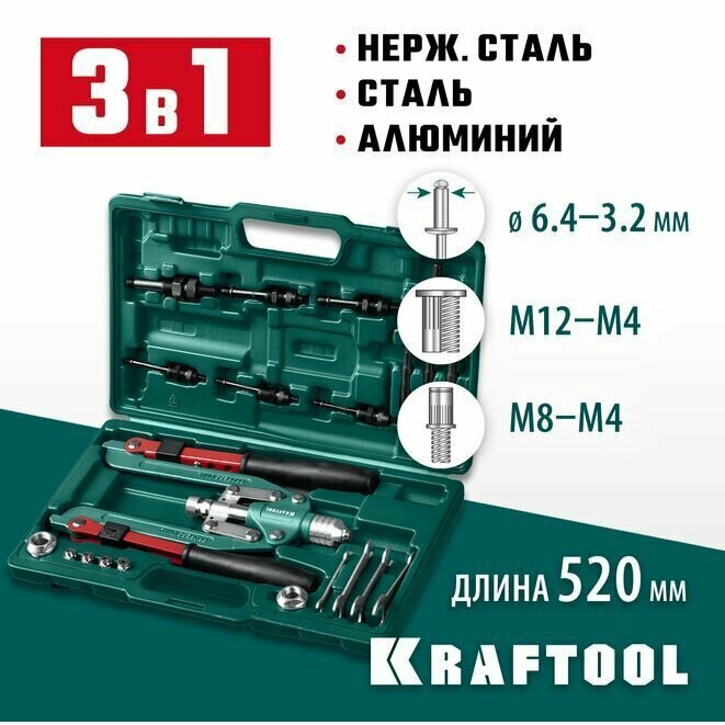 Купить Заклепочник 31182_z01 , KRAFTOOL резьбовые, вытяжные заклепки (М4-М12, d3.2-6.4 мм), штифты М4-М8