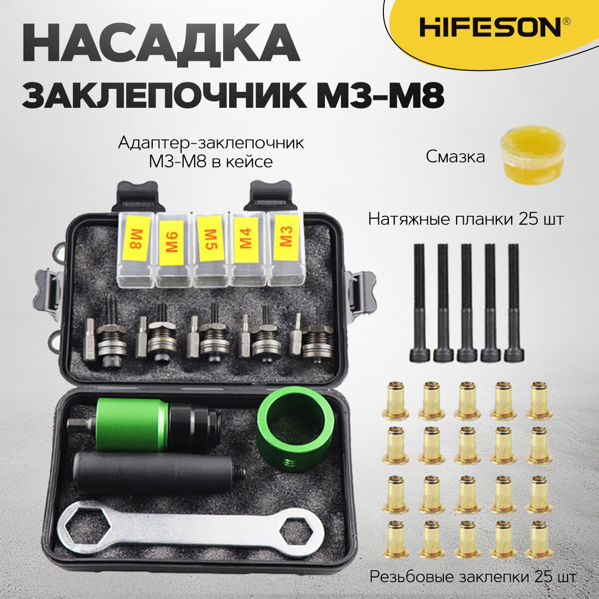 Насадка заклепочник резьбовых заклепок М3-М8 на дрель шуруповерт HIFESON интересное: