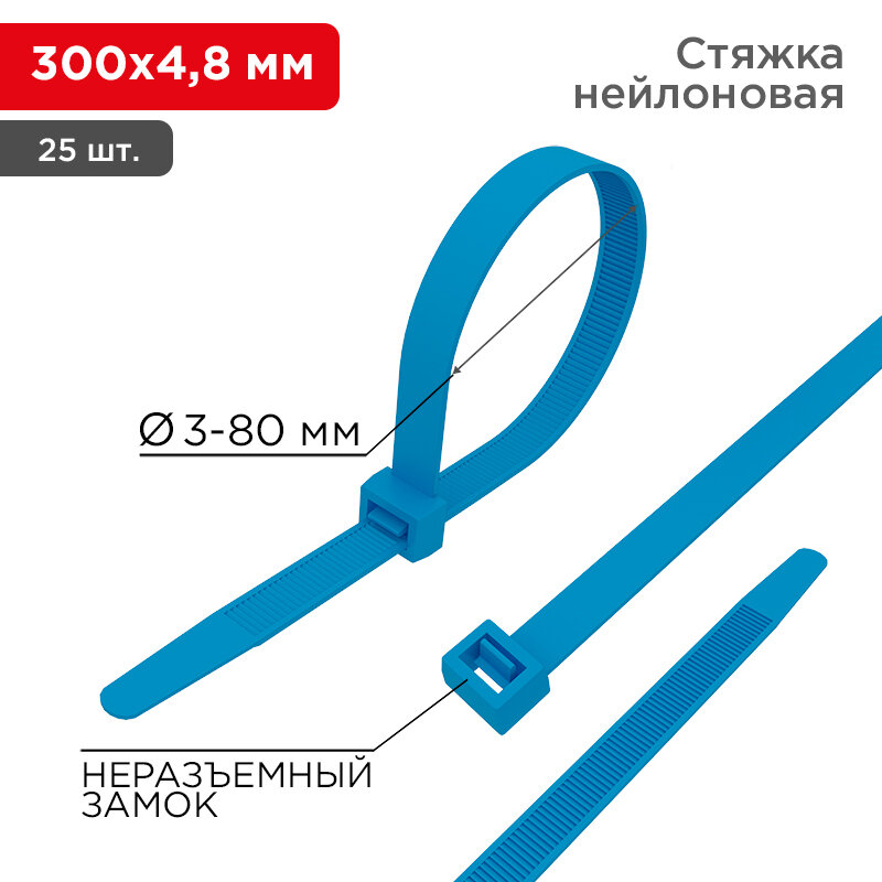 Хомут прочный нейлоновый (кабельная стяжка) 300 x 4,8 мм, в упаковке 25 штук интересное: