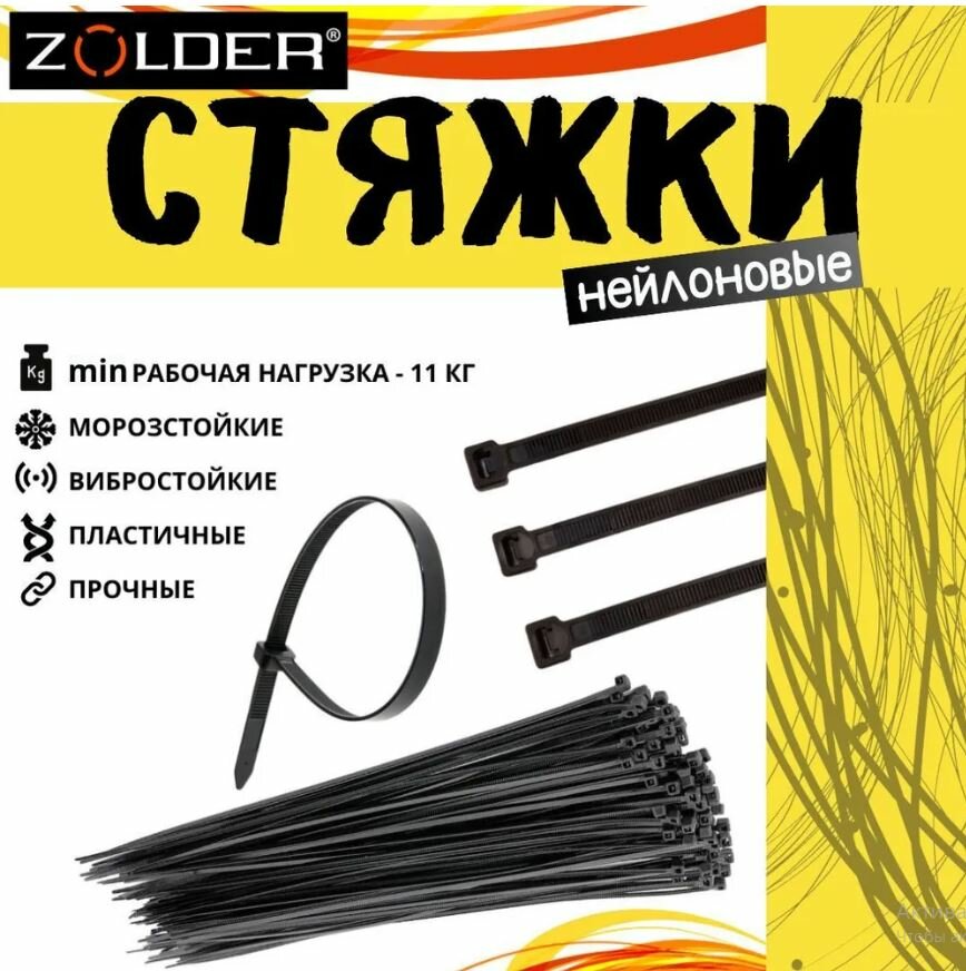 Стяжка кабельная (хомут стяжной пластиковый) ZOLDER, 200х3,6мм, нейлон, черная (100 шт.)