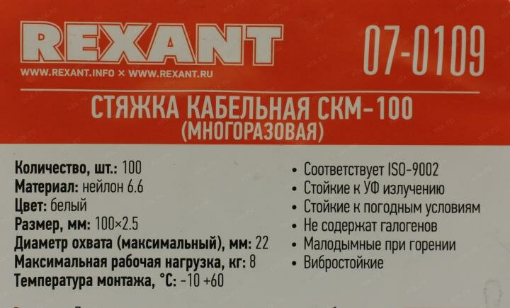 Ниже Вы можете прочитать отзывы на Хомут многоразовый нейлоновый (кабельная стяжка) 100 x 2,5 мм, в упаковке 100 штук, ознакомится с подробными характеристиками, посмотреть интересные обзоры и фотографии на Хомут многоразовый нейлоновый (кабельная стяжка) 100 x 2,5 мм, в упаковке 100 штук.