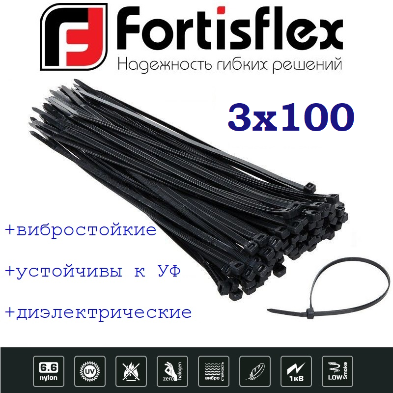 Купить Кабельные стяжки Fortisflex нейлоновые стандартные черные КСС 3x100