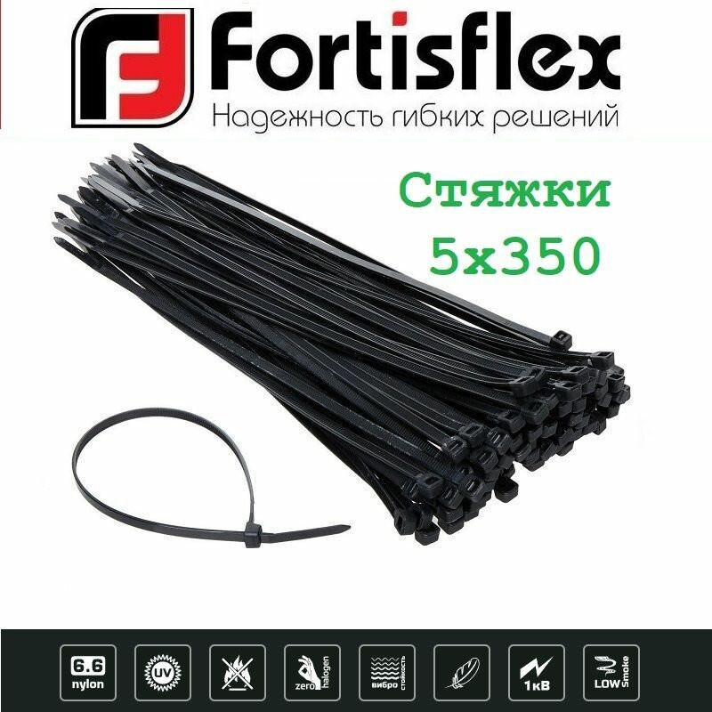 Купить Стяжки / хомуты пластиковые кабельные, нейлон, 5х350, черные100шт Fortisflex