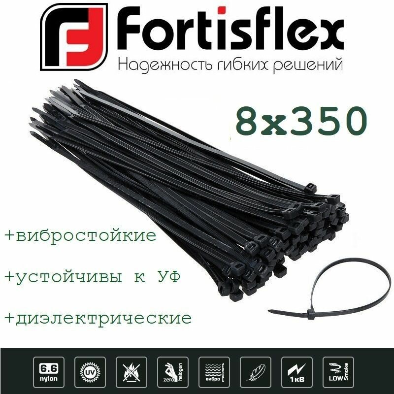 Купить Стяжки / хомуты пластиковые кабельные, нейлон, 8х350, черные100шт Fortisflex