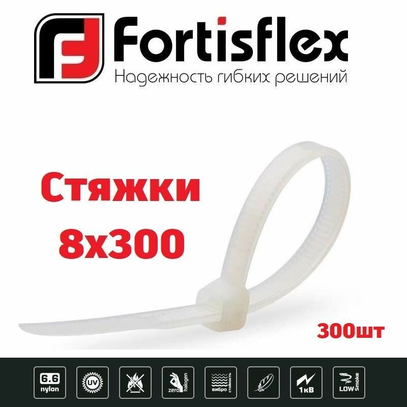 Купить Стяжки / хомуты пластиковые кабельные, нейлон, 8х300, белые 100шт Fortisflex 3уп