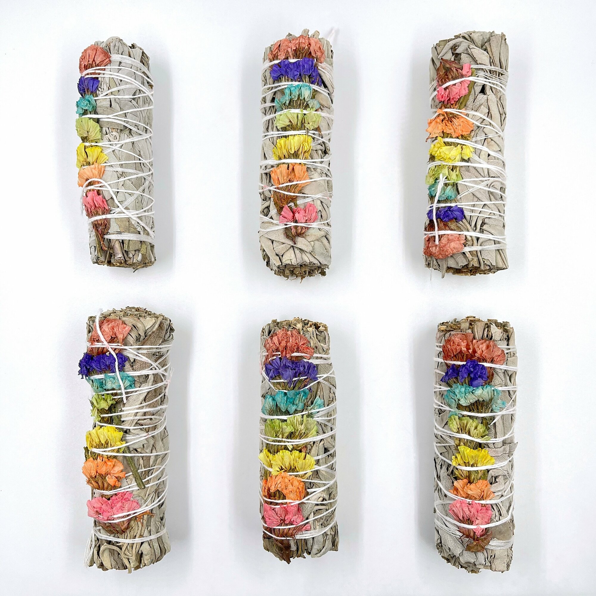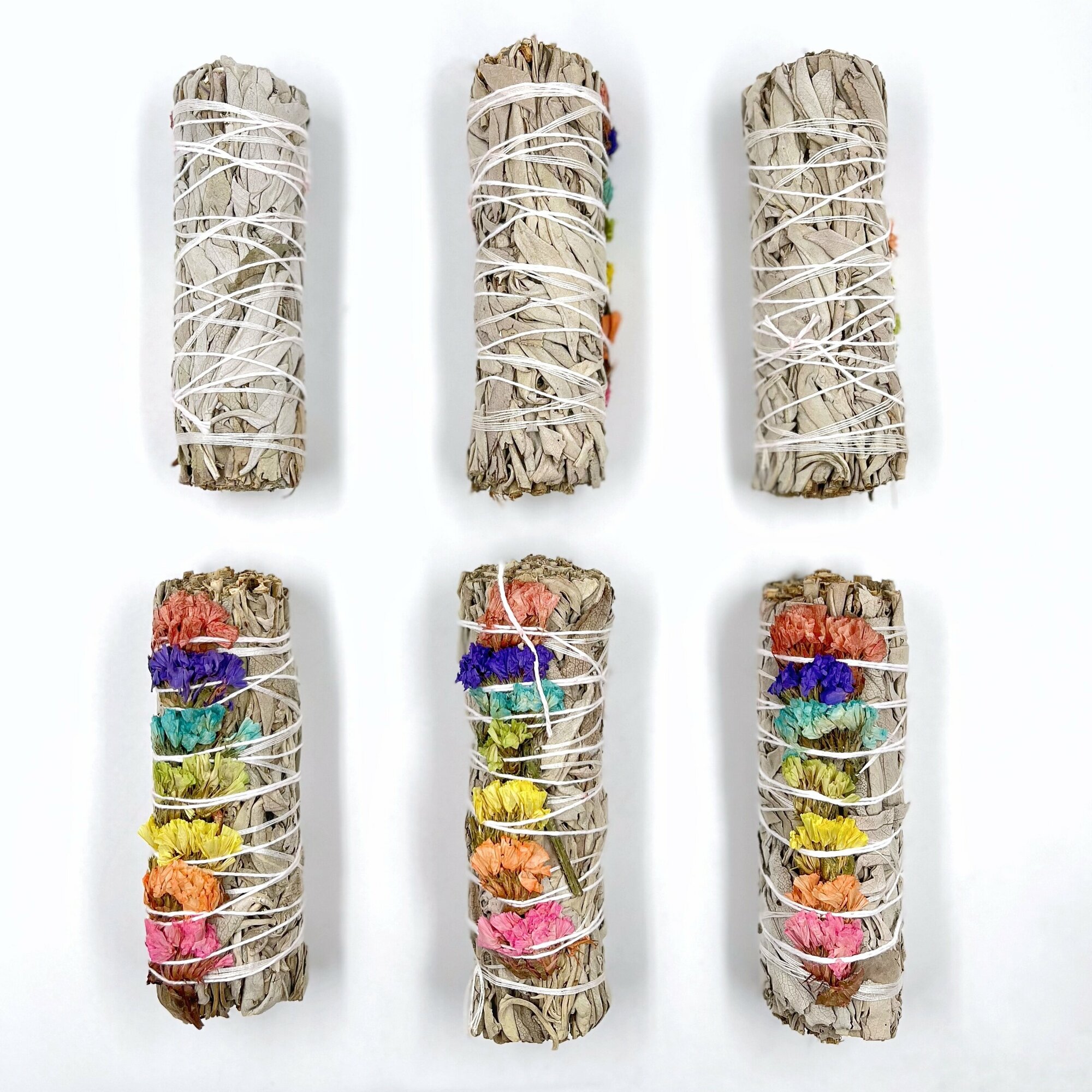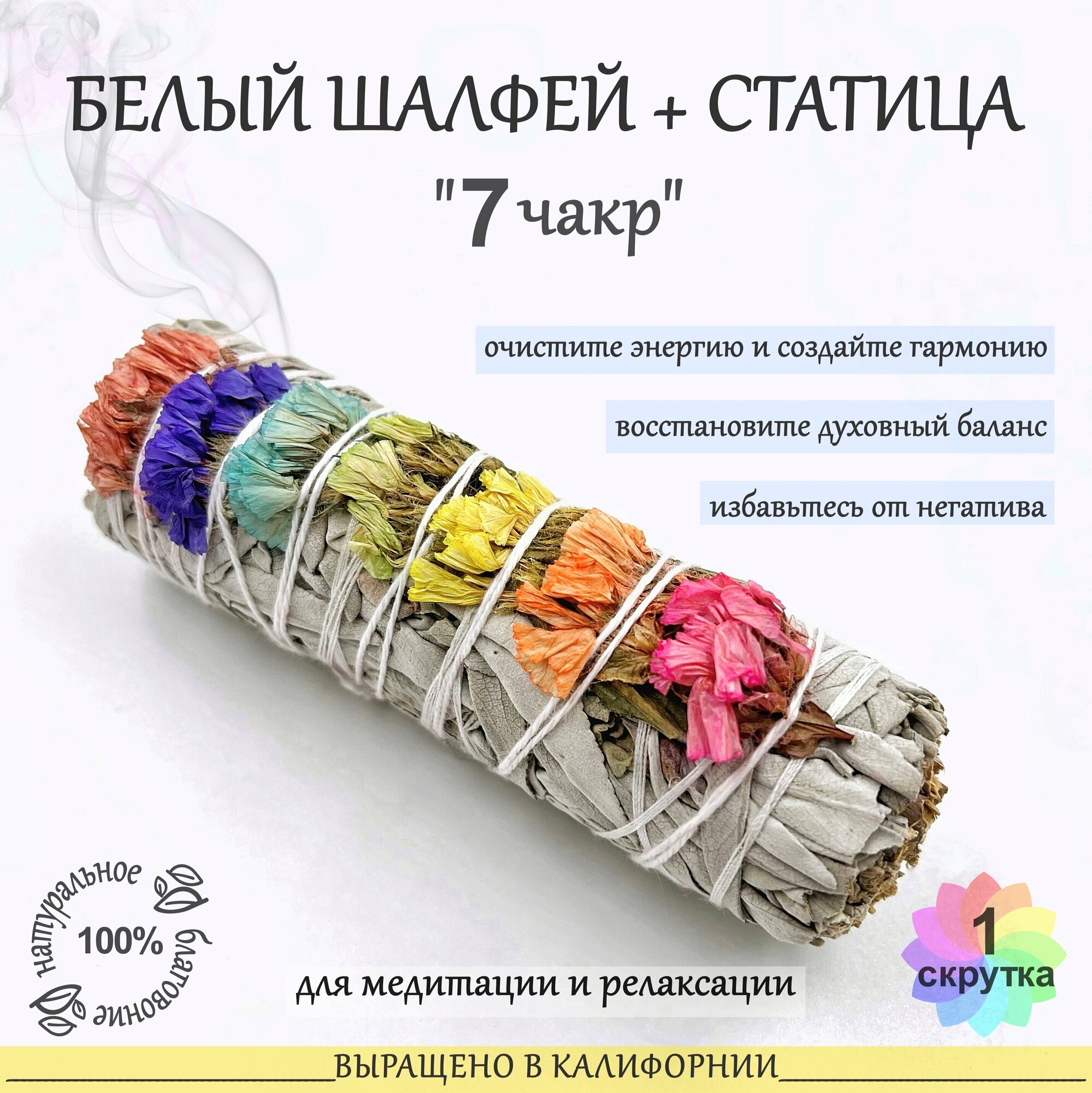 Купить Белый Шалфей из Калифорнии, 7 Чакр с Цветами Статицы для Медитации, Йоги и Ароматерапии