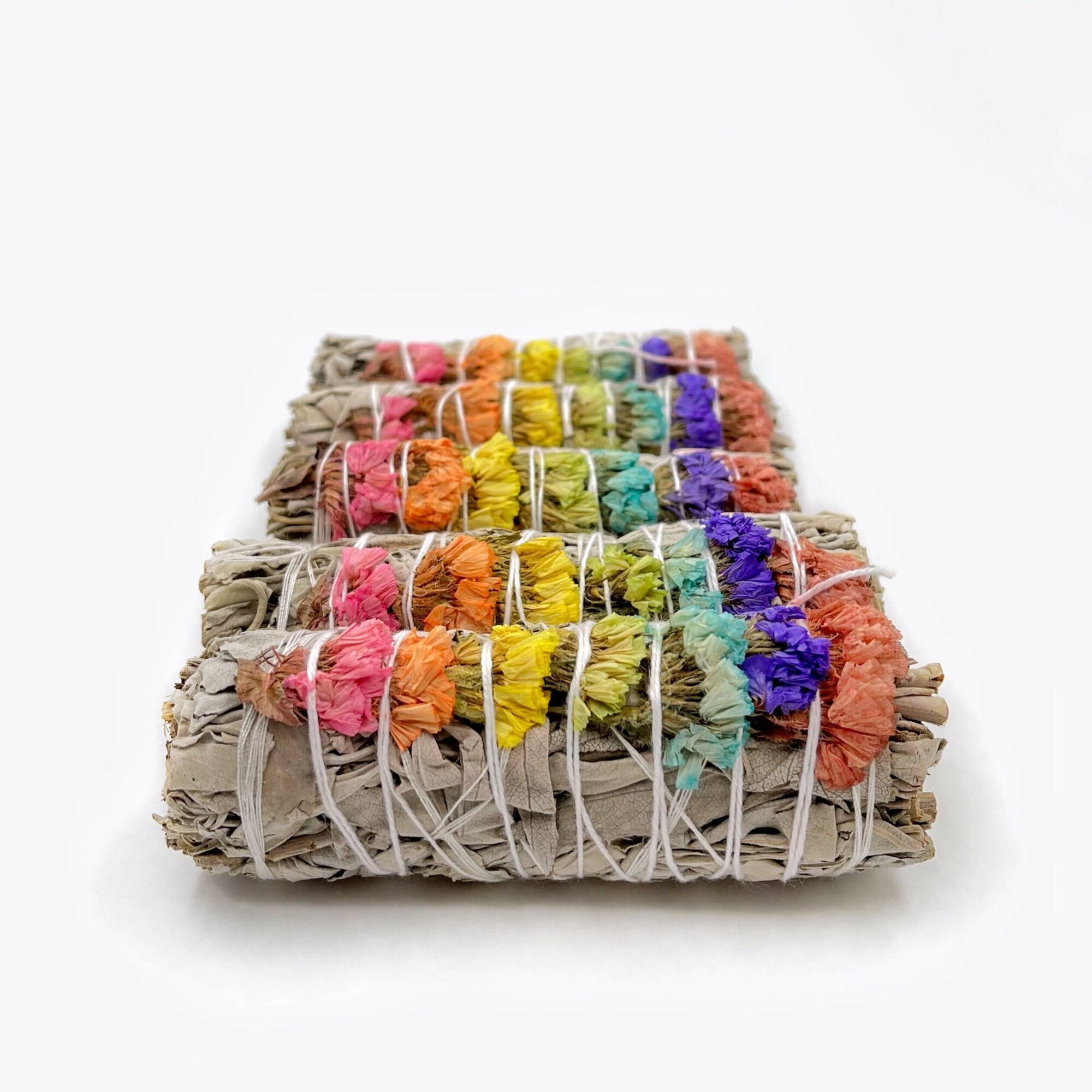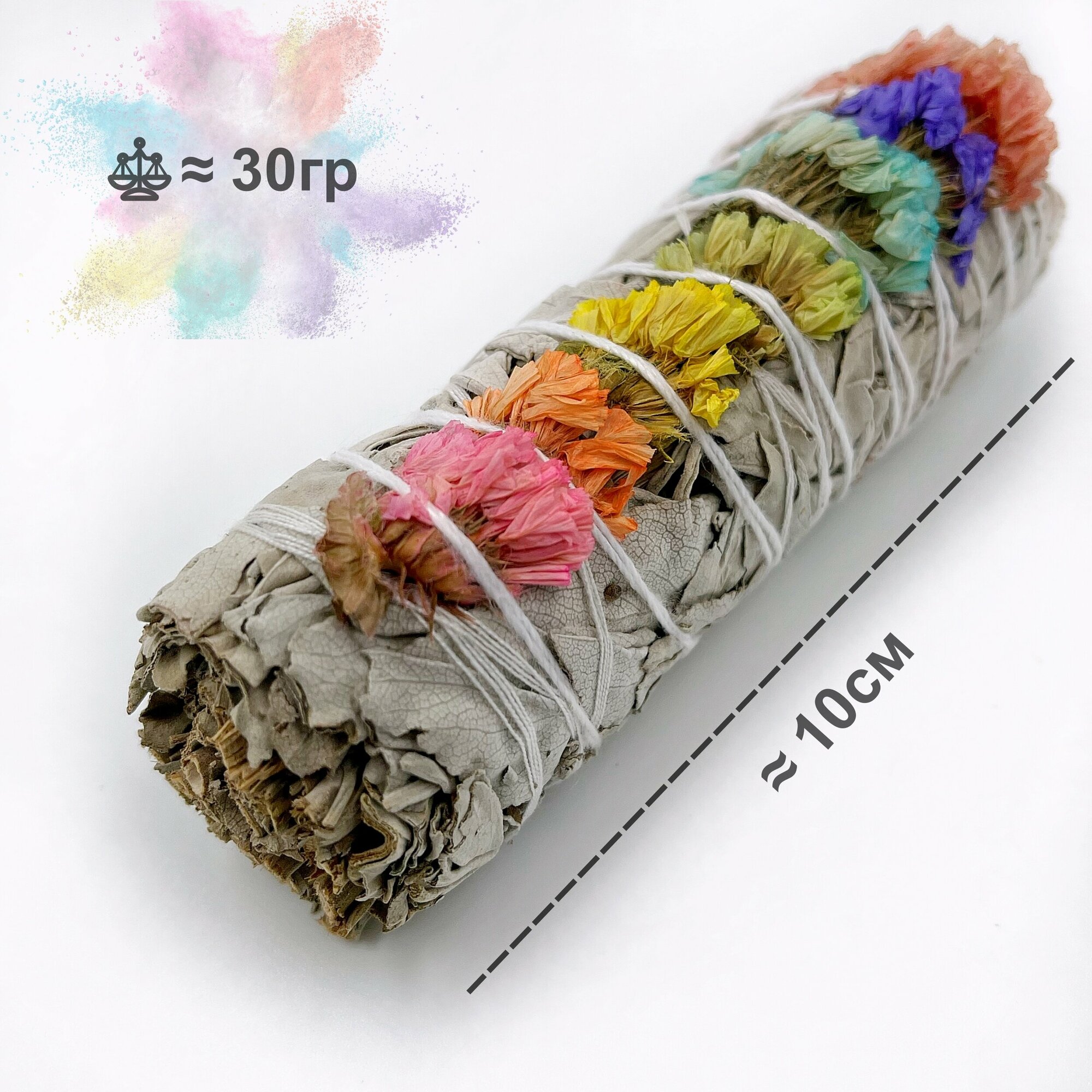 Белый Калифорнийский Шалфей 7 чакр с разноцветными Лепестками роз для медитации/йоги/ароматерапии