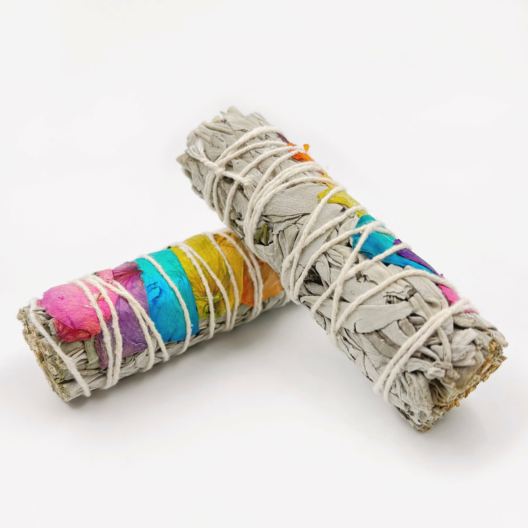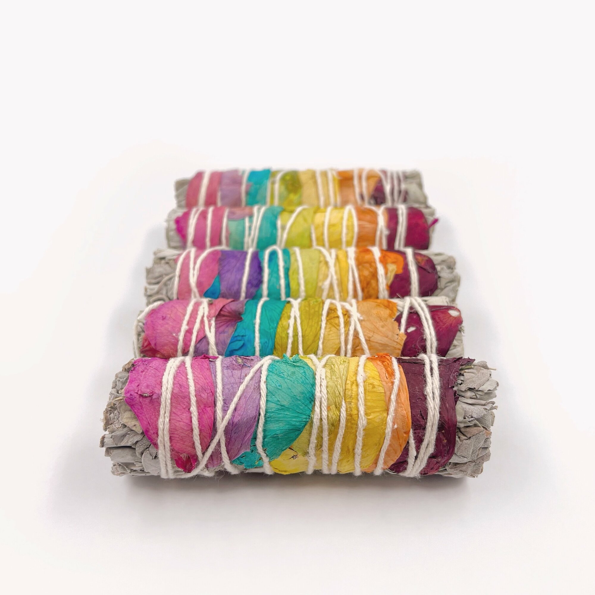 Купить Белый Калифорнийский Шалфей 7 чакр с разноцветными Лепестками роз для медитации/йоги/ароматерапии