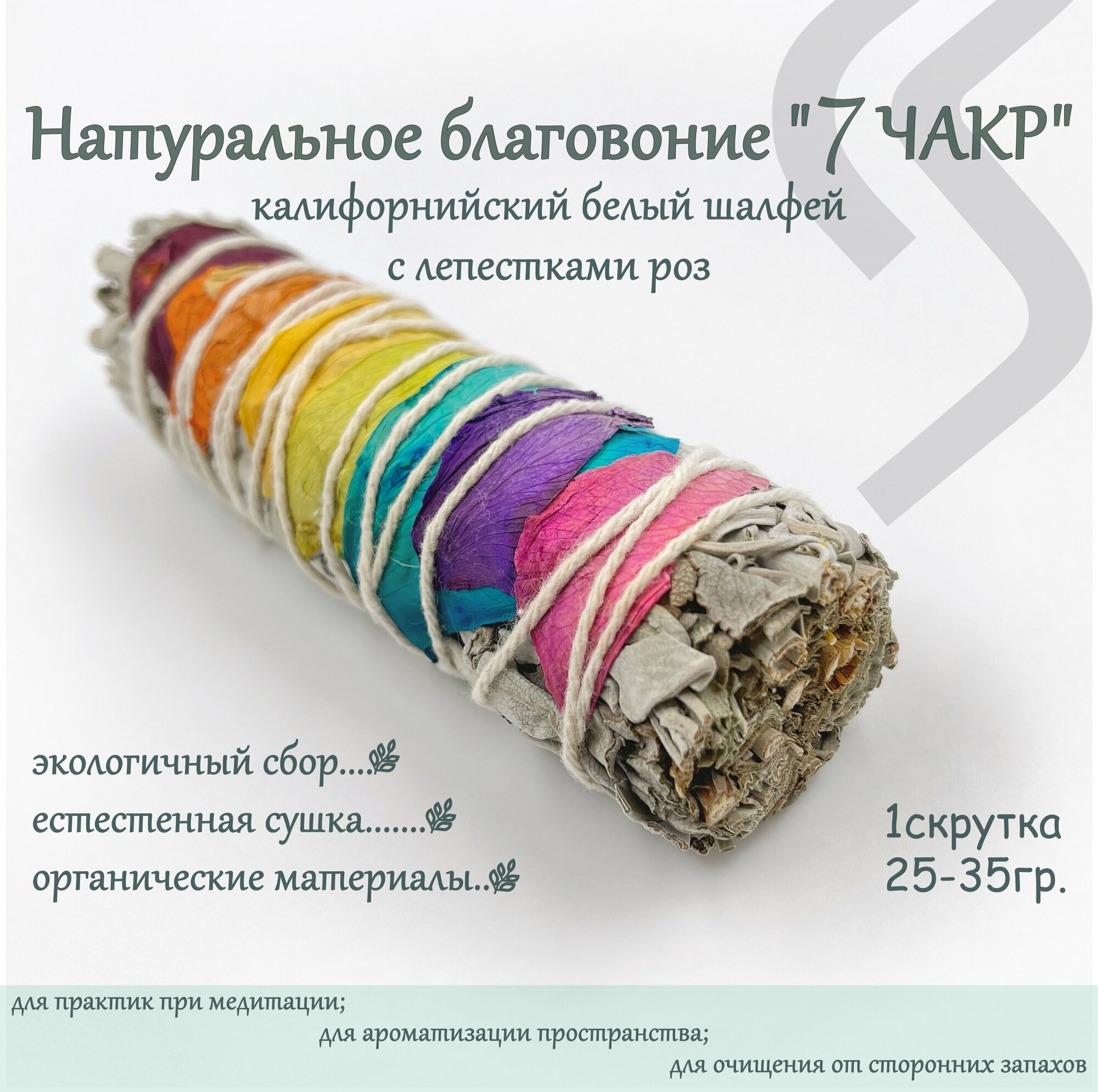 СохранитьБелый Калифорнийский Шалфей 7 чакр с разноцветными Лепестками роз для медитации/йоги/ароматерапии интересное: