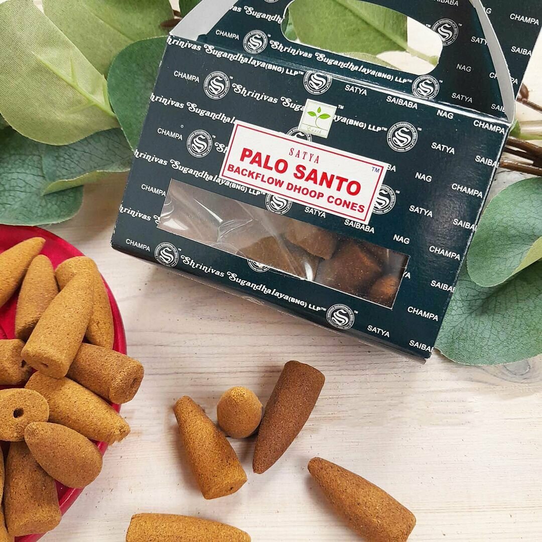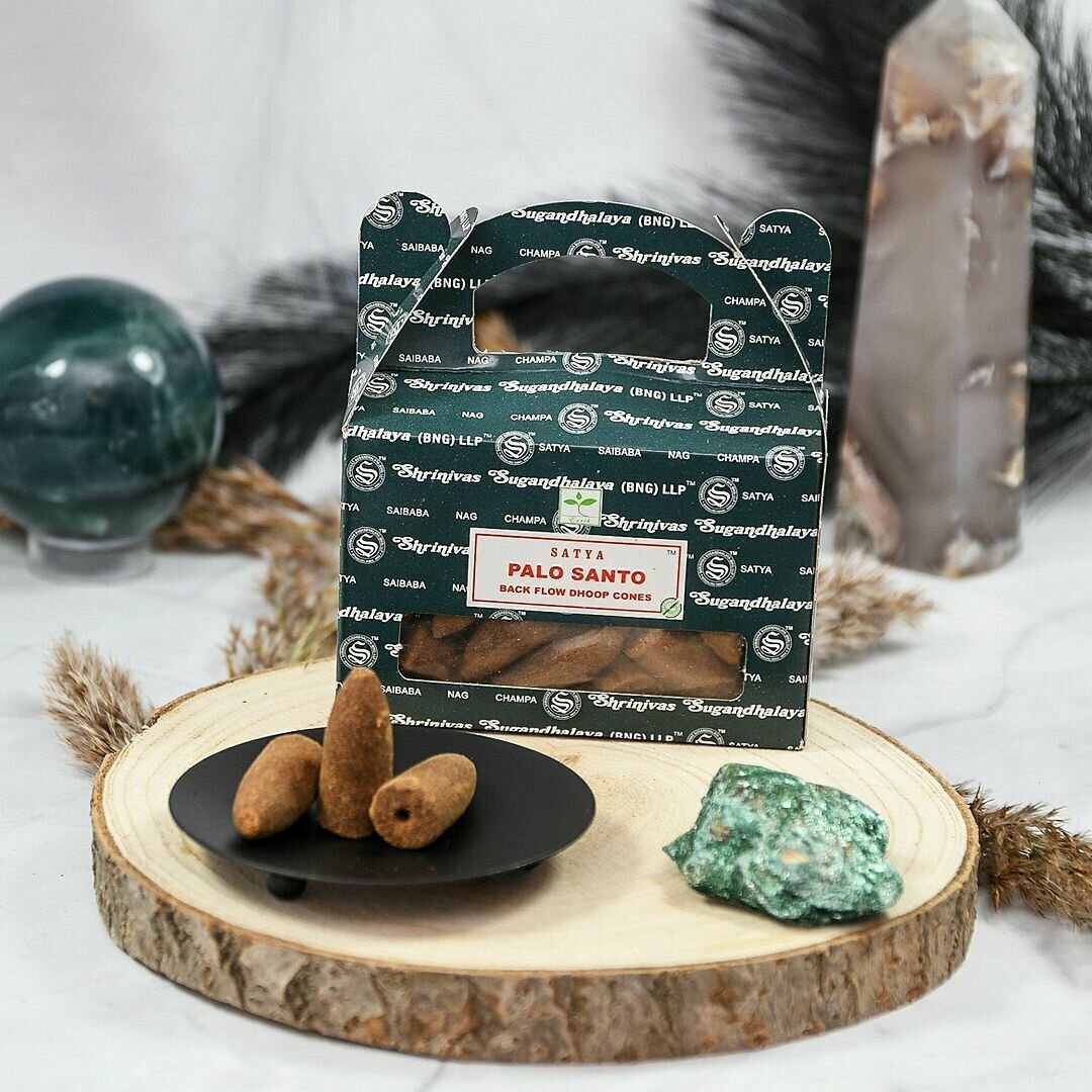 Купить PALO SANTO Backflow Dhoop Cones, Satya (пало санто благовония пуля стелющийся дым, Сатья), уп. 24 конуса.