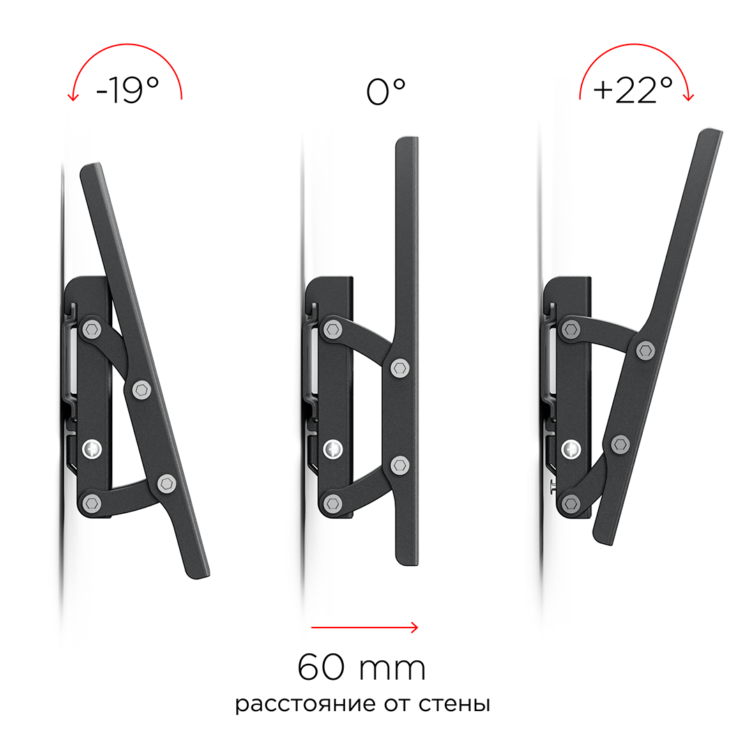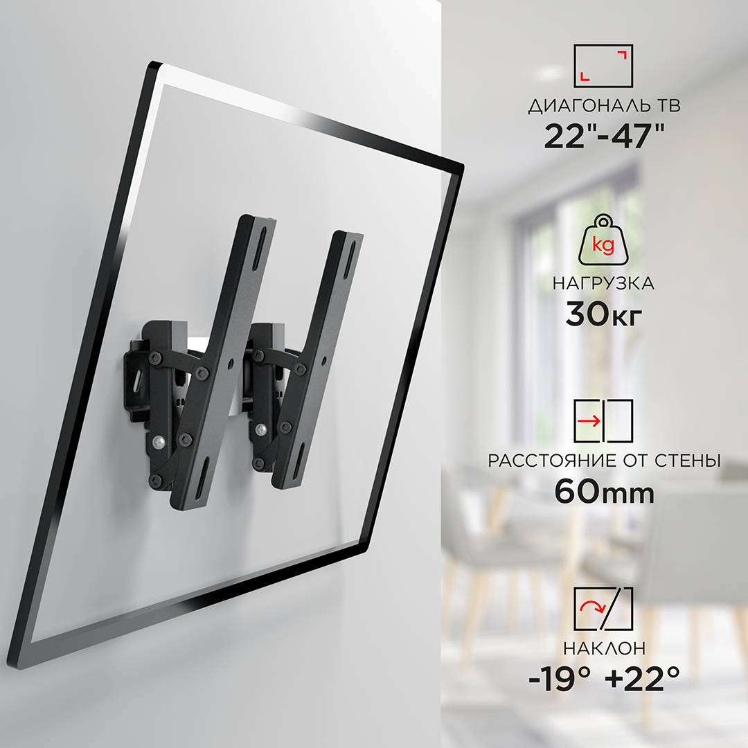 Кронштейн Holder LCD-T2611-B черный для ЖК ТВ 22-47 настенный от стены 60мм наклон -19°/+22° VESA 200x200 до 30 кг