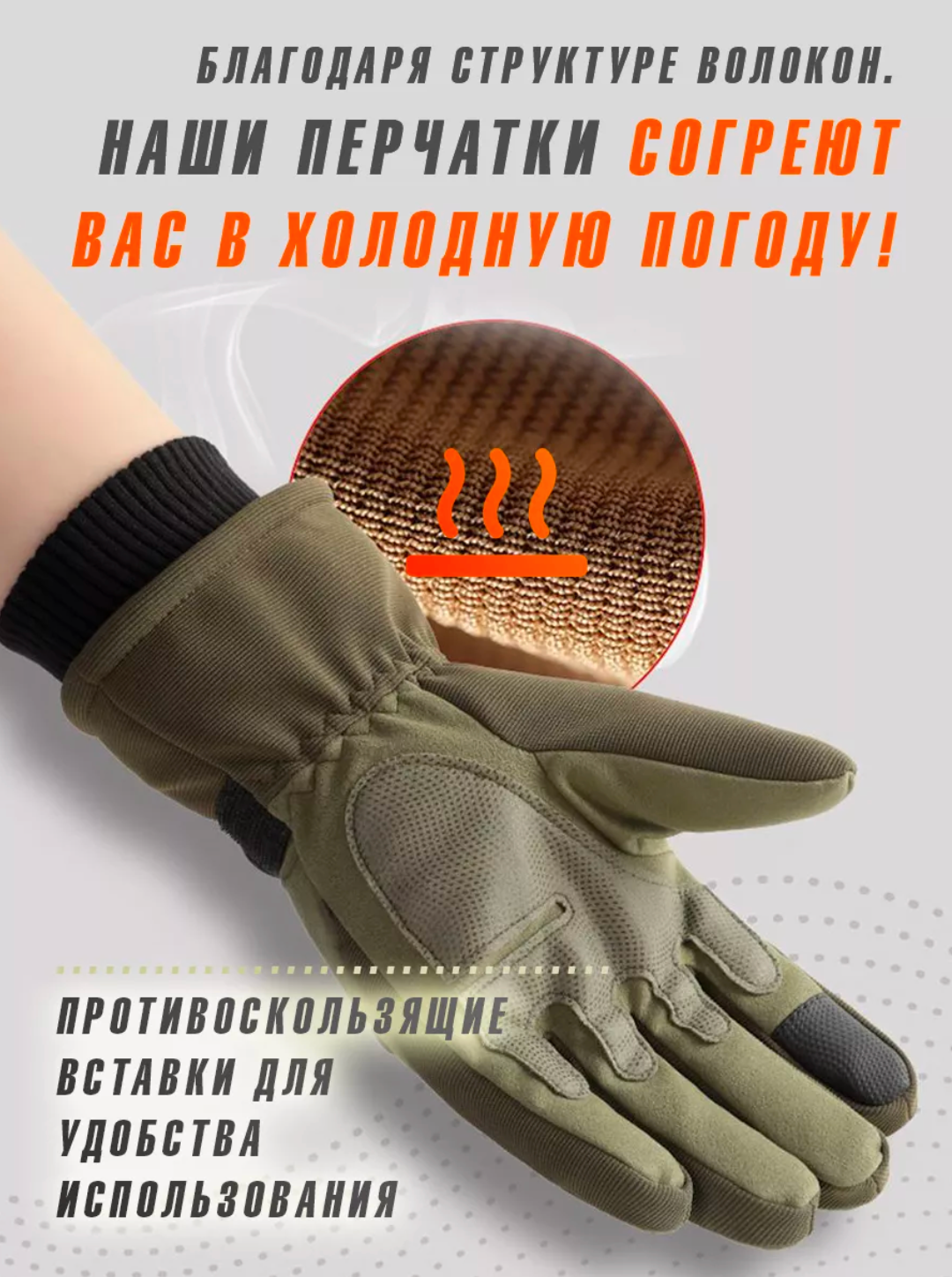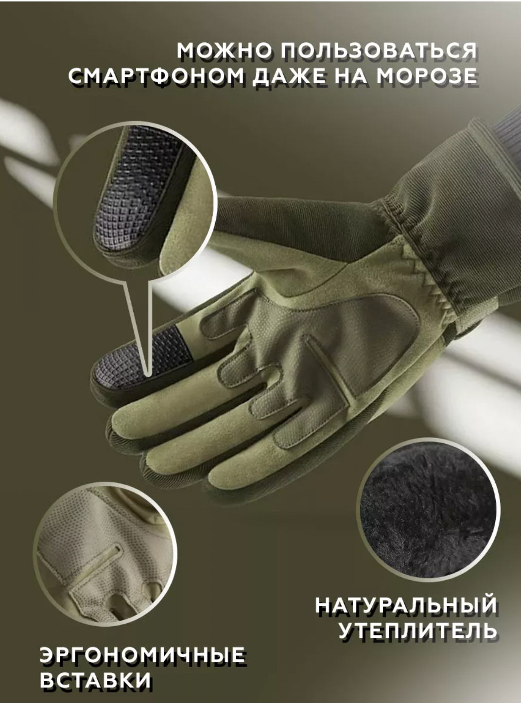 Тактические перчатки зимние с подкладом для мужчин полнопалые цвет Зимний Олива интересное: