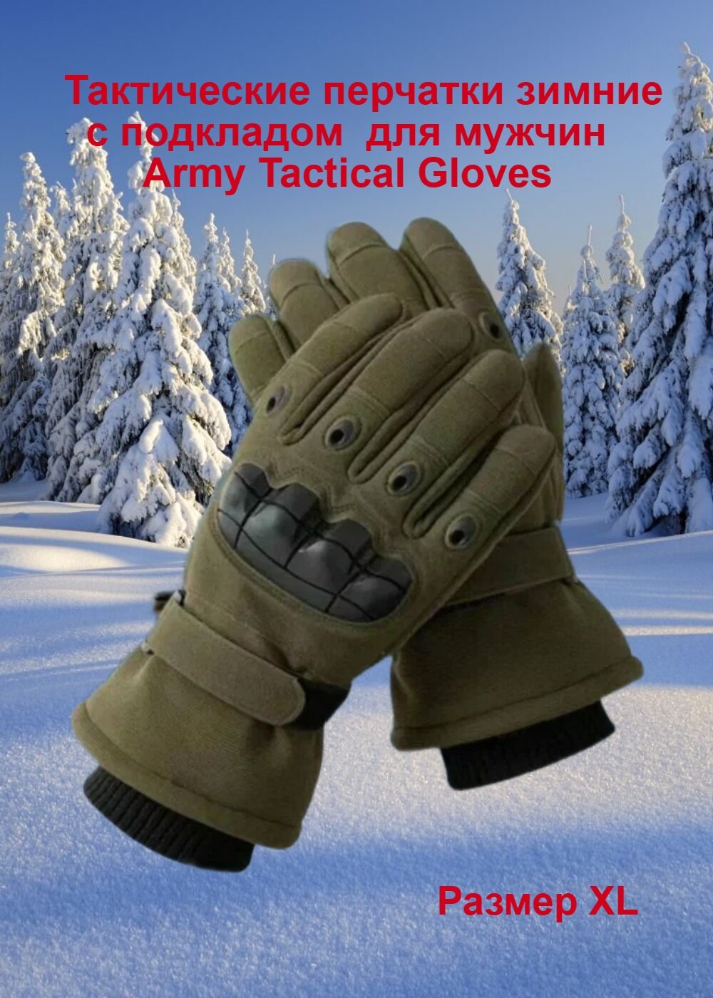 Тактические перчатки зимние с подкладом для мужчин полнопалые Army Tactical Gloves, цвет Зимний Олива