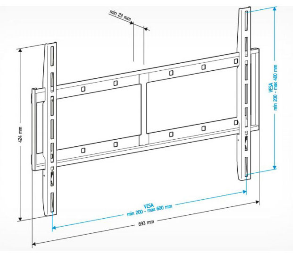 Кронштейн Holder LCD-F6607-B черный для ЖК ТВ 42-65 настенный от стены 23мм наклон 0° VESA 600x400 до 60 кг
