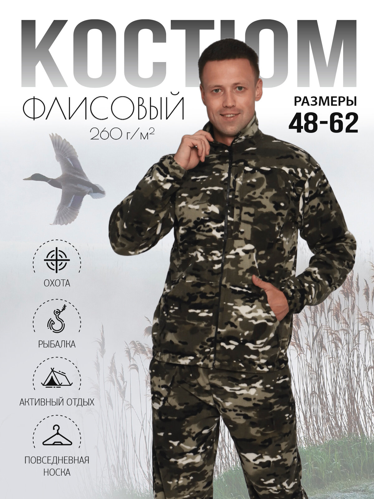 Купить Костюм мужской флисовый для охоты и рыбалки туризма цвет камуфляж, размер 56-58