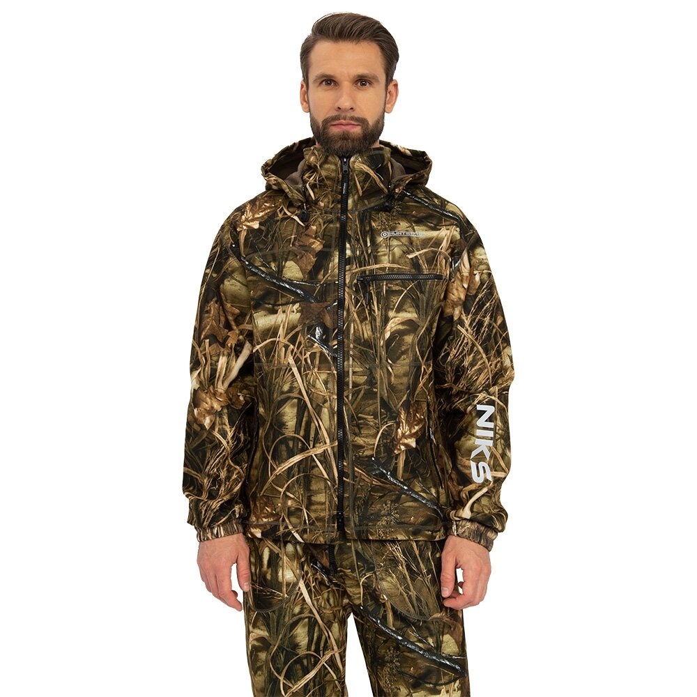 Купить Костюм тактический мужской демисезонный на флисе Huntsman Никс Люкс, ткань Alova Windblock, цвет камыш (р.52-54/182-188)