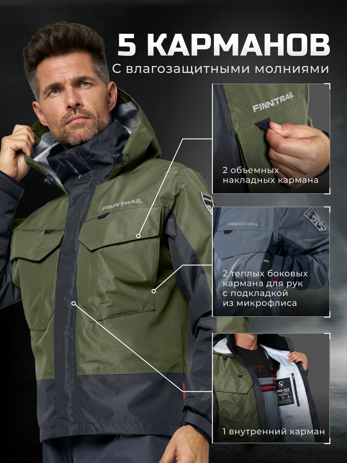 СохранитьКуртка мембранная водонепроницаемая мужская Finntrail COASTER Khaki 4023 размер XXL интересное: