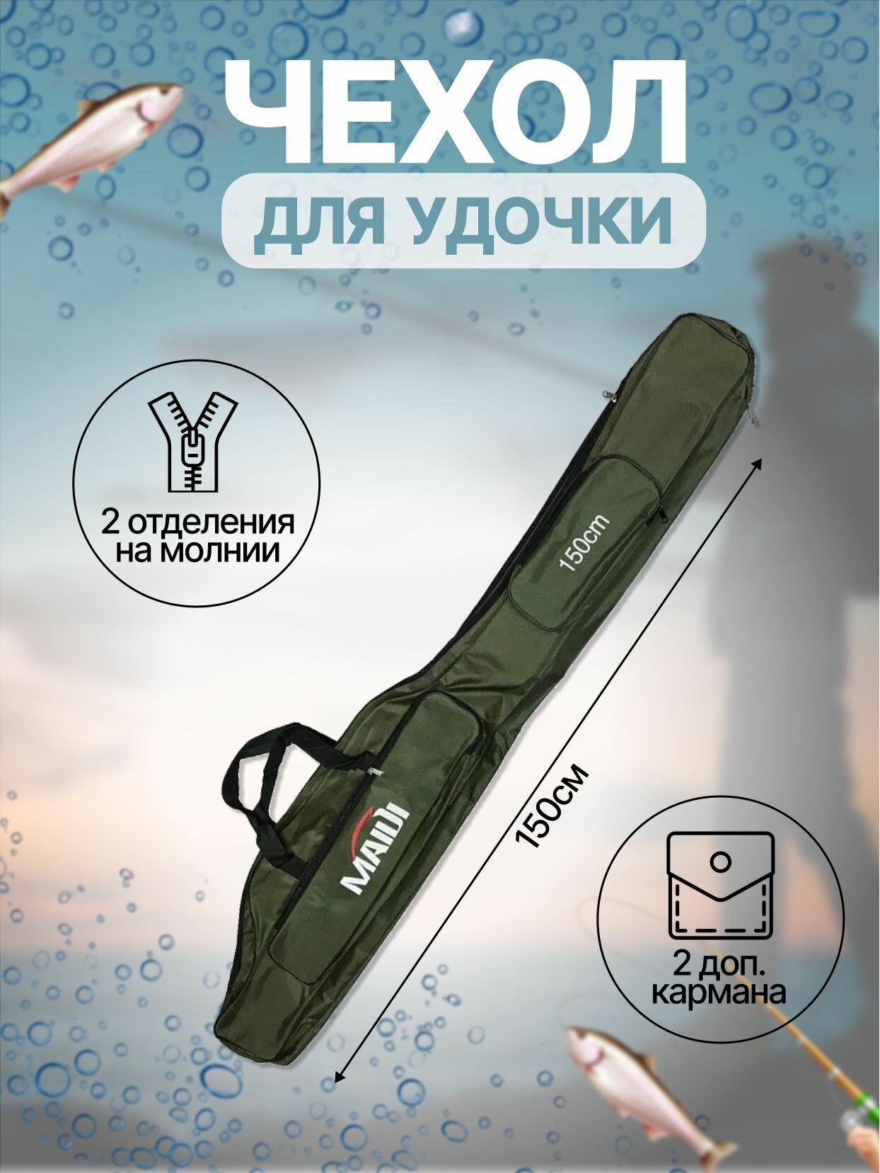 Чехол для удочки, рыболовный 150 см. /Чехол для спиннинга / Сумка для рыбалки интересное: