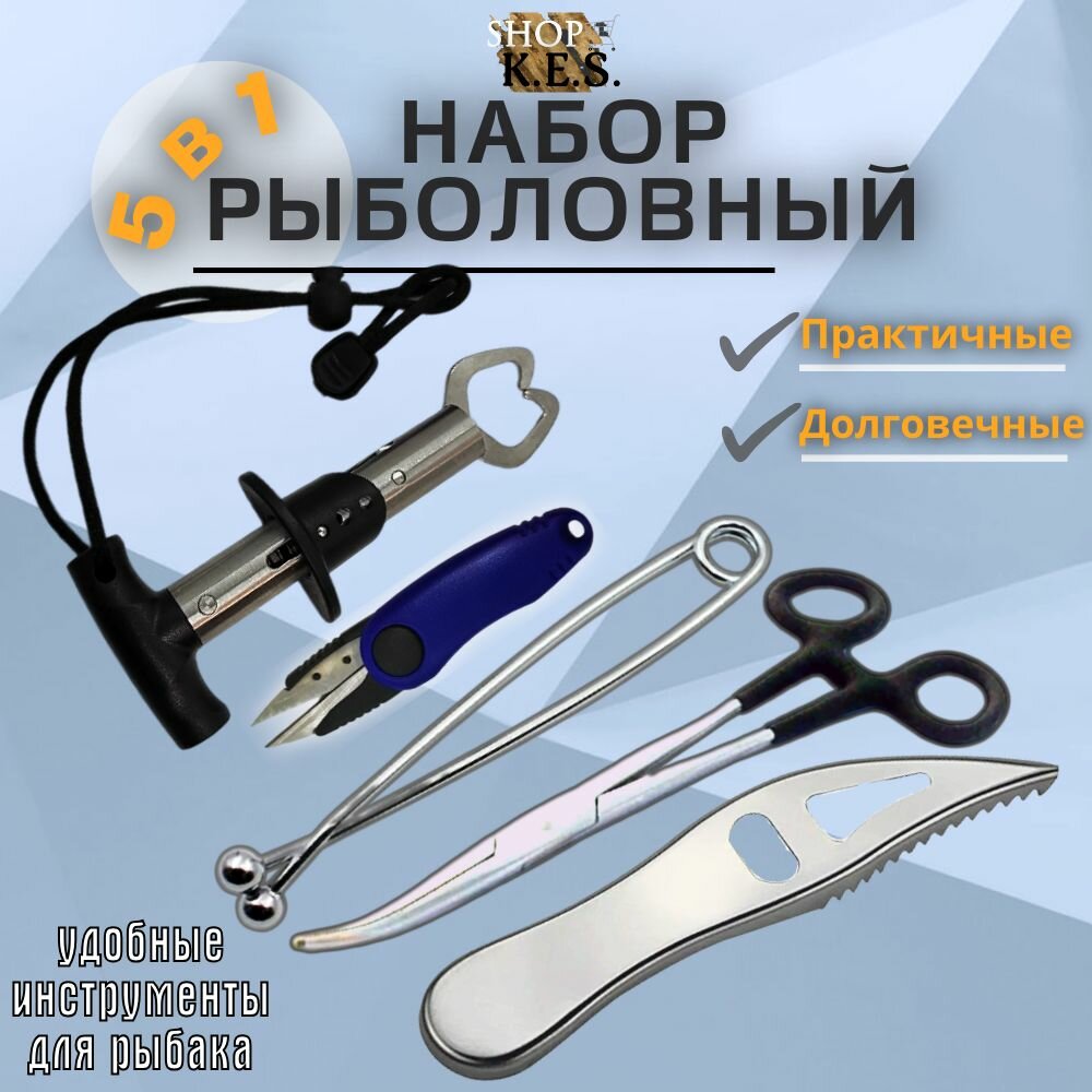 Липгрип , ножницы-перекусы, экстрактор щипцы, зевник, нож для удаления чешуи / Набор рыболовный 5в1