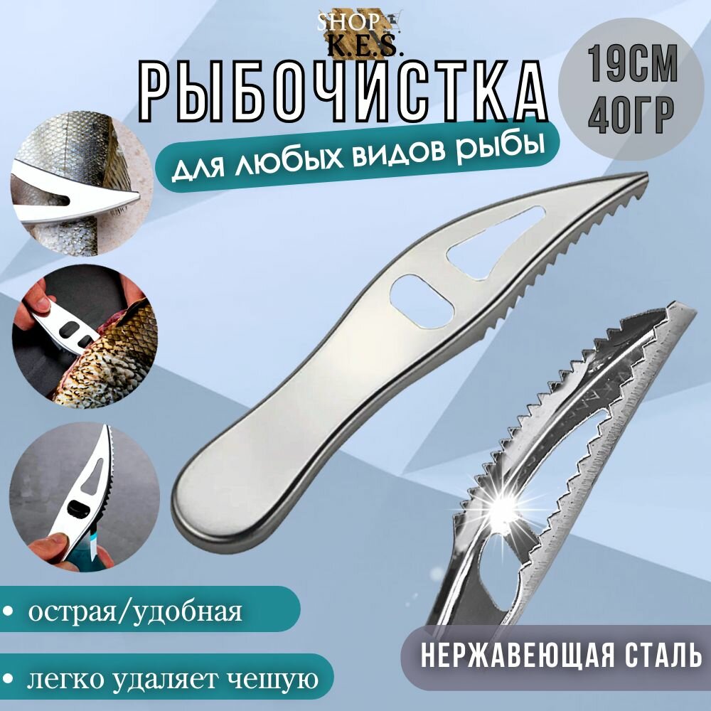 Извлекатель крючков из пасти рыбы (зажим, корнцанг, экстрактор, щипцы), расширитель зевник для щуки из нержавеющей стали и рыбочистка нож для чистки чешуи рыбы / Набор рыбака 3в1 на любой сезон