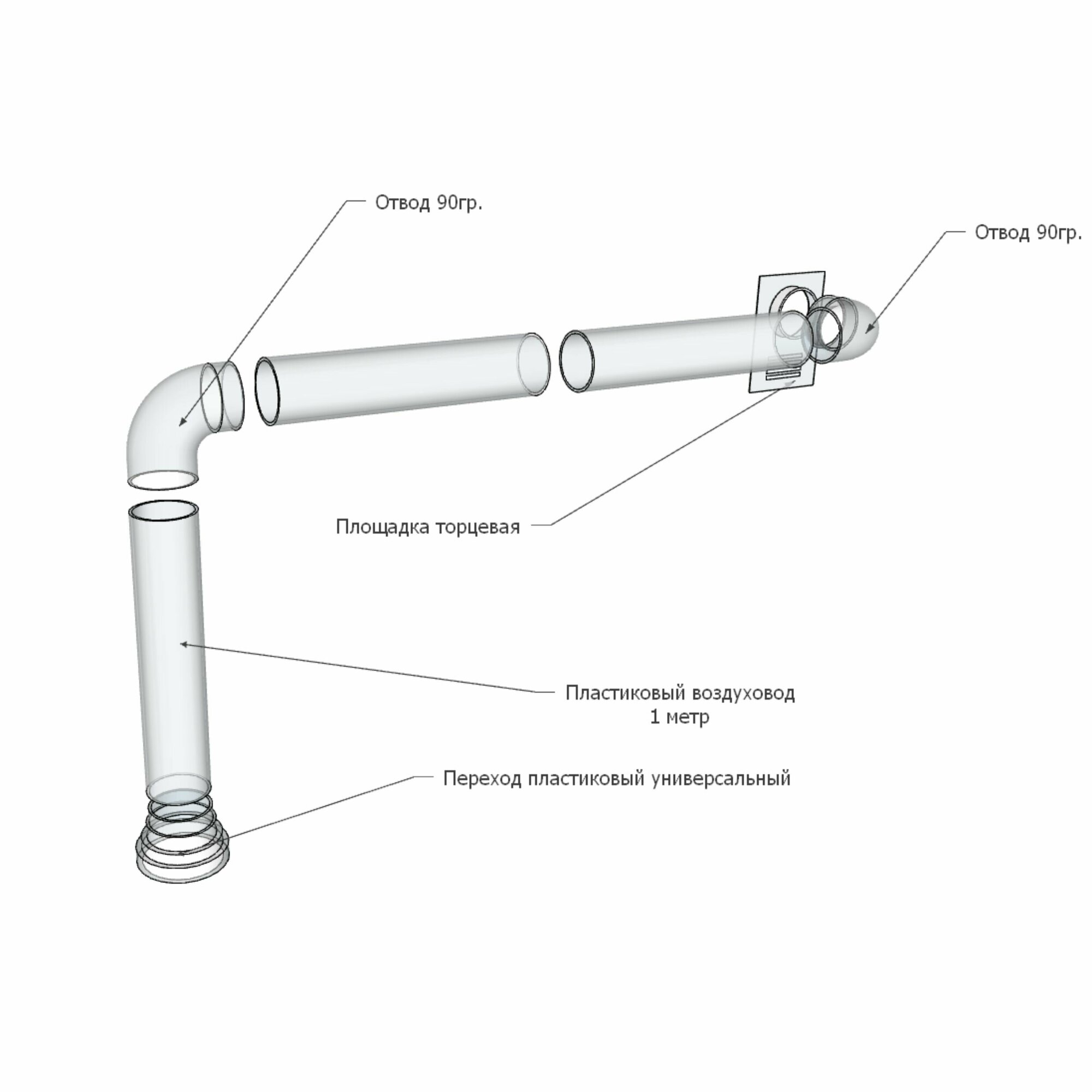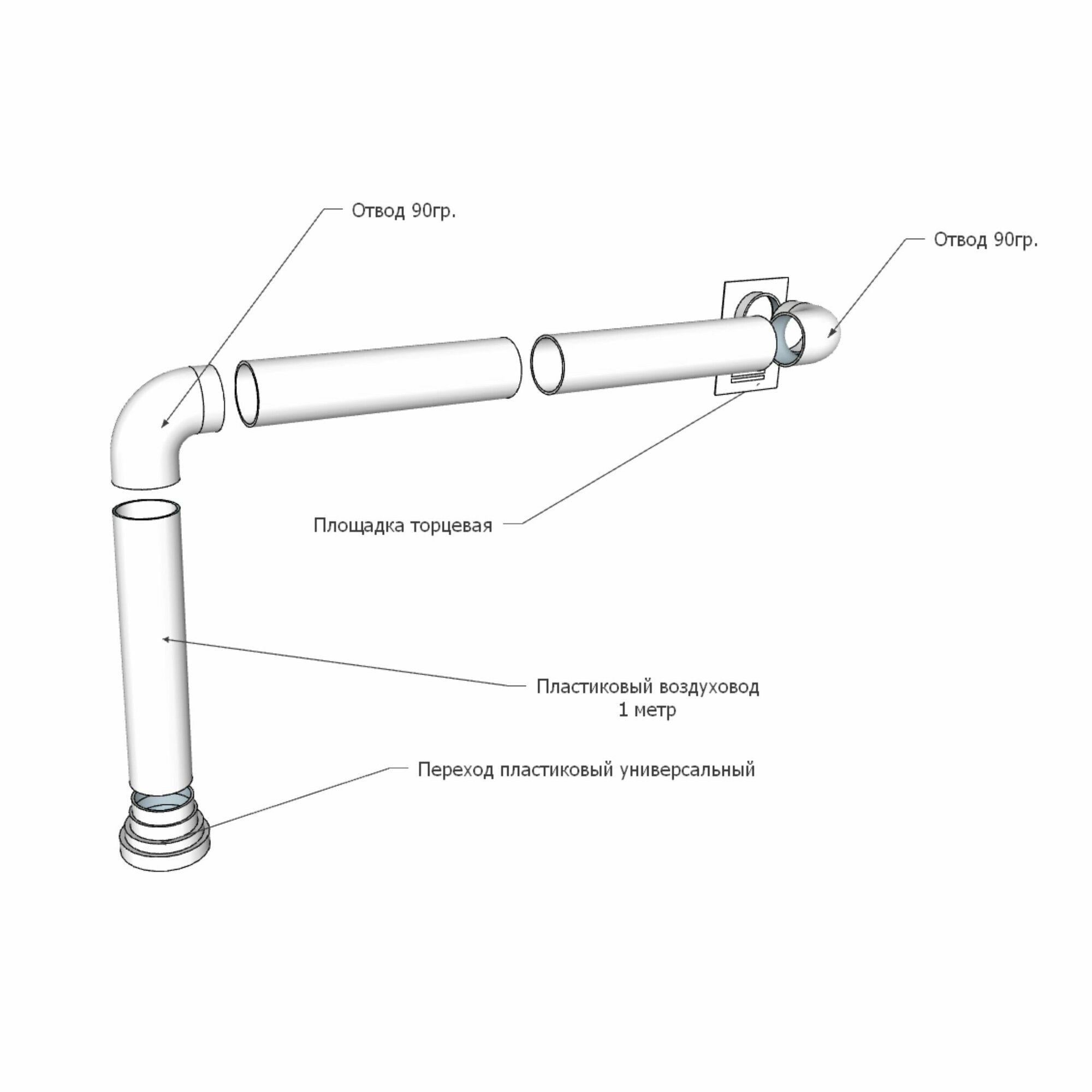 Купить Комплект d.125 мм для подключения кухонной вытяжки к вентиляционной шахте