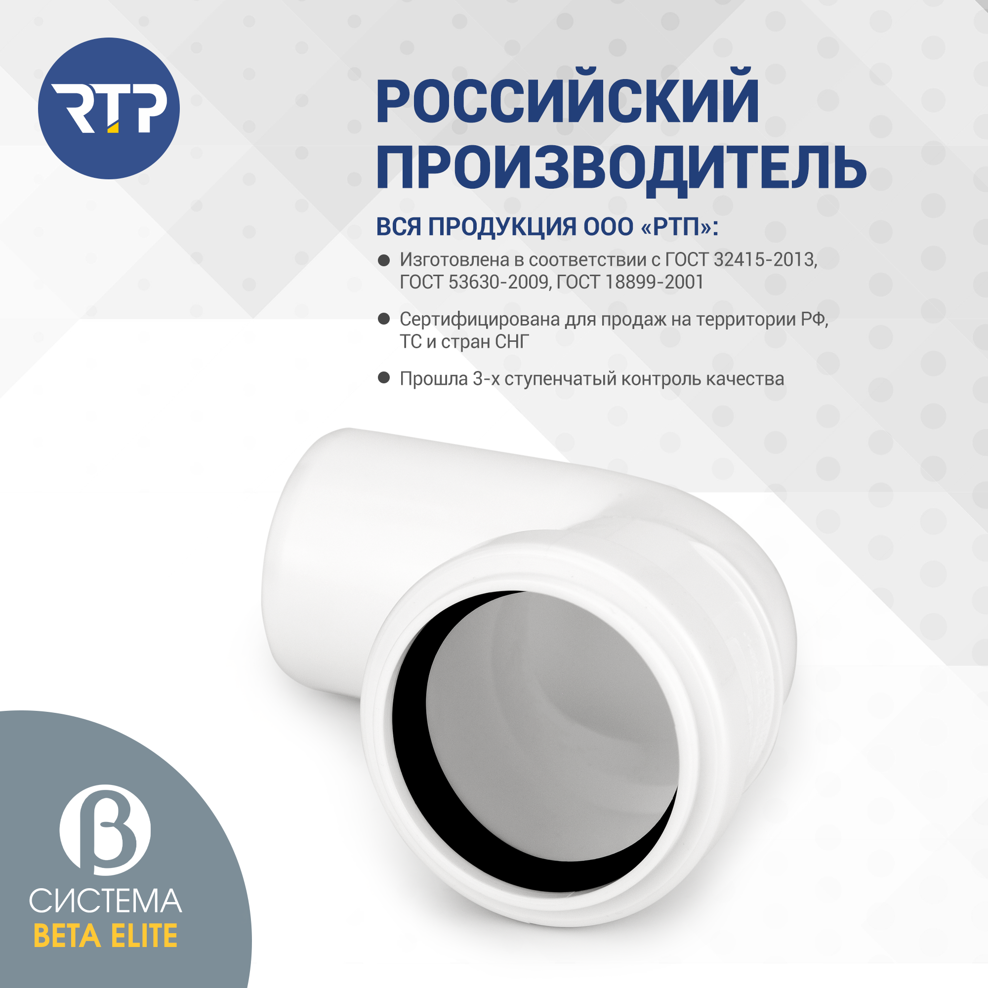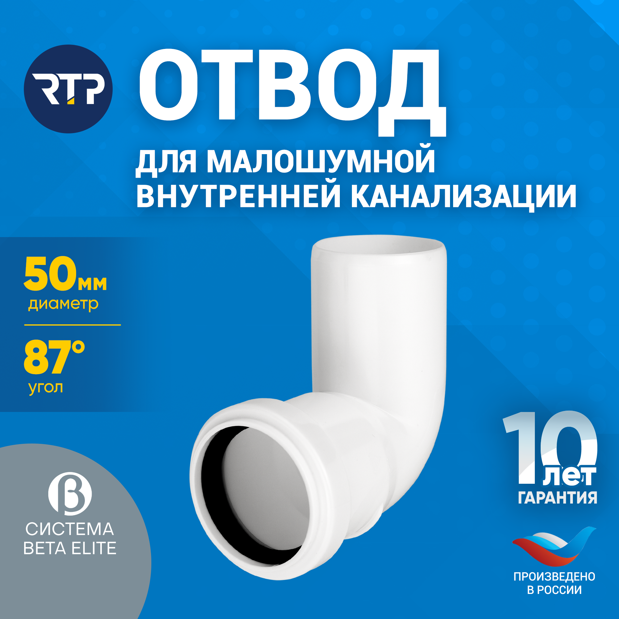 Отвод / колено RTP для малошумной внутренней канализации полипропилен, PP-R, ППР, D50 х 87° интересное: