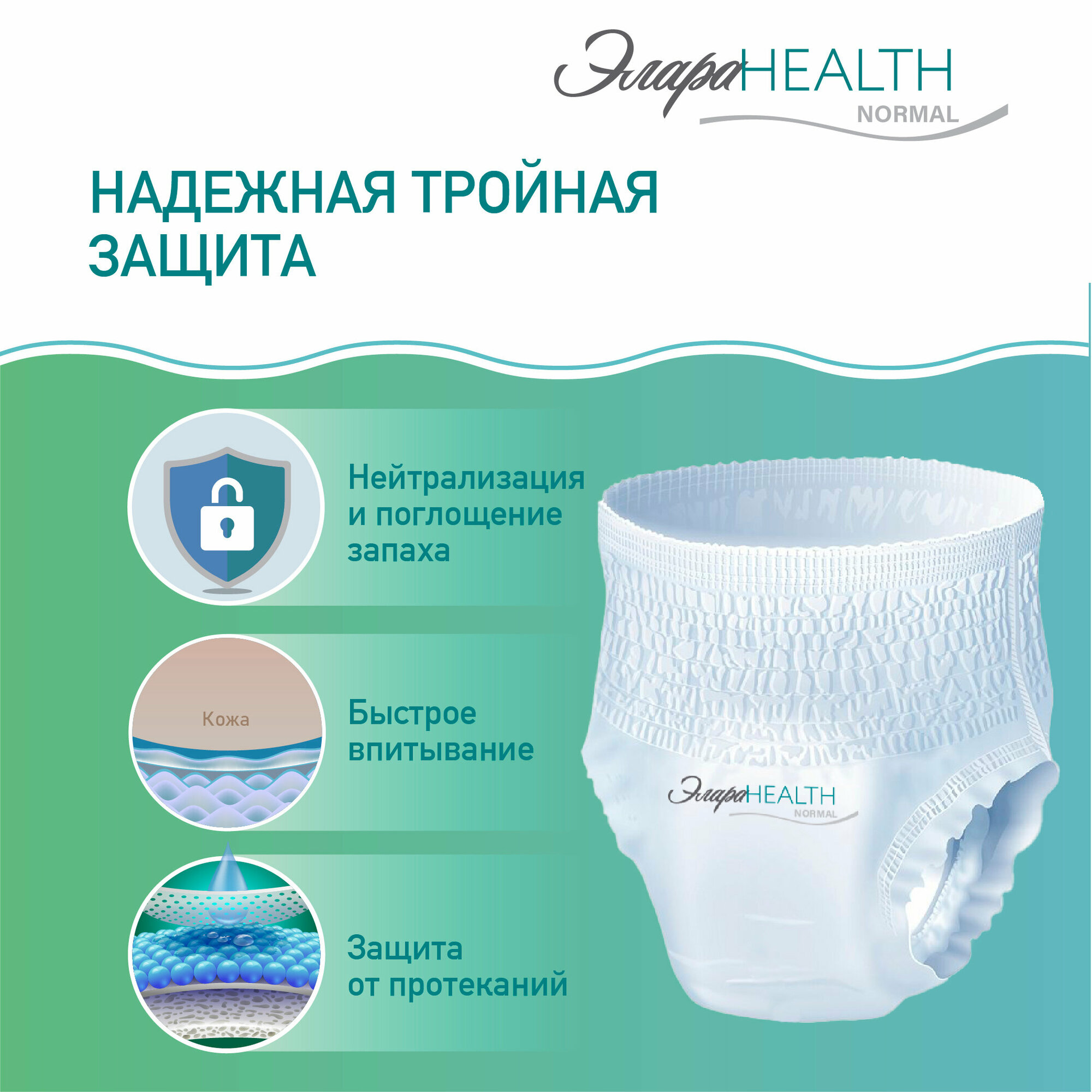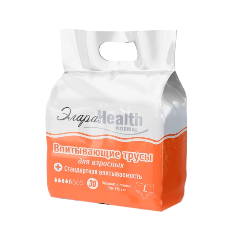 Подгузники-трусы для взрослых ЭлараHealth Normal / размер L/ обхват талии 100-135 см / 30 шт интересное: