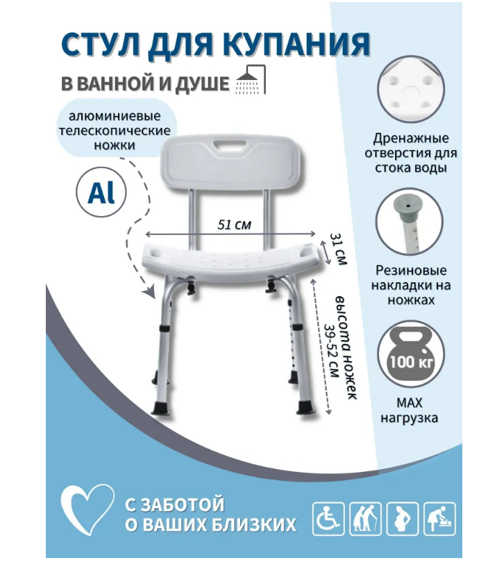 Купить Стул для ванной для пожилых / Cтул для душа/ Табурет для ванной для пожилых