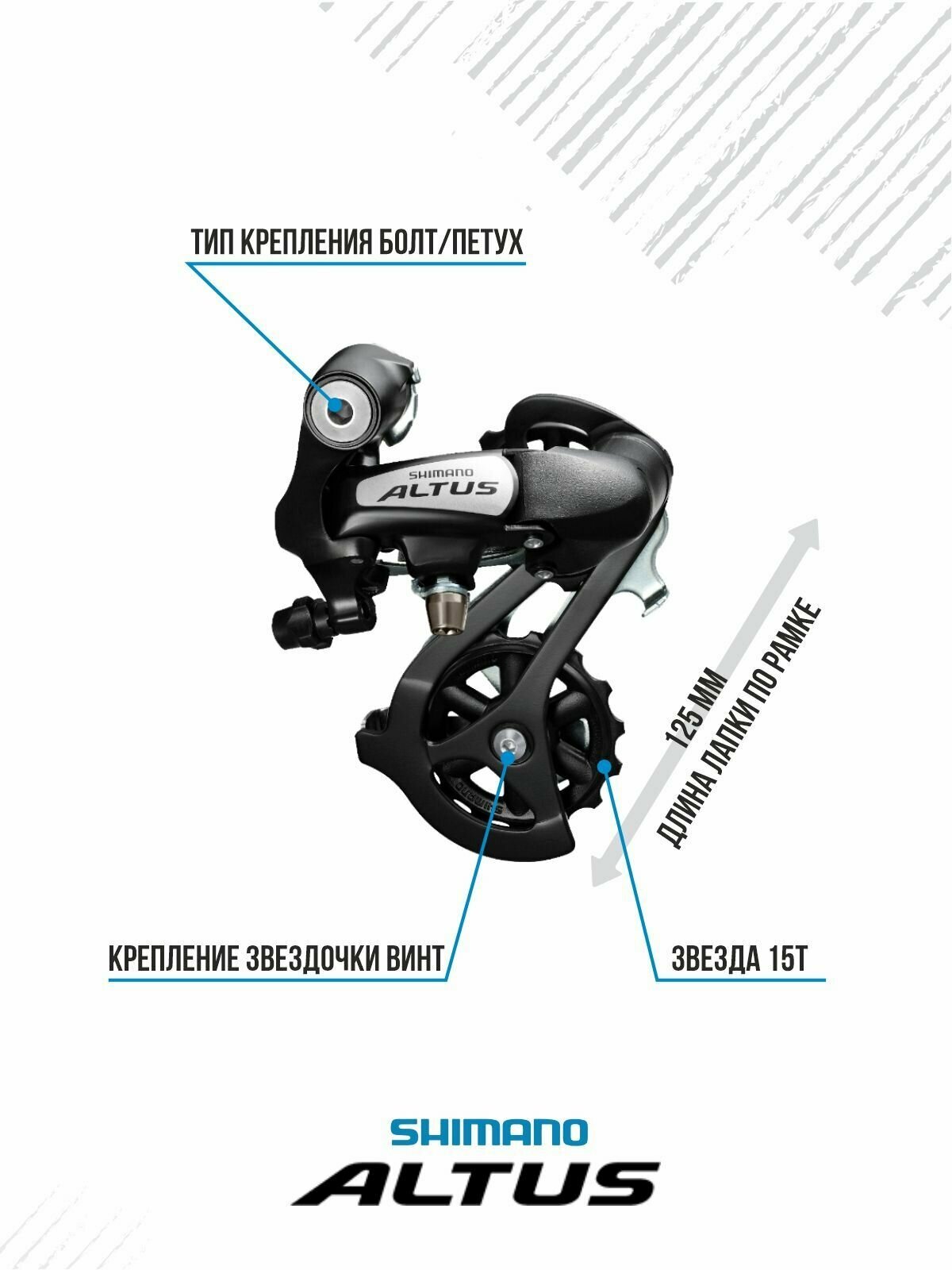 Задний переключатель скоростей, Shimano RD-M310, Altus, 7-8 скоростей, крепление на петух (болт)