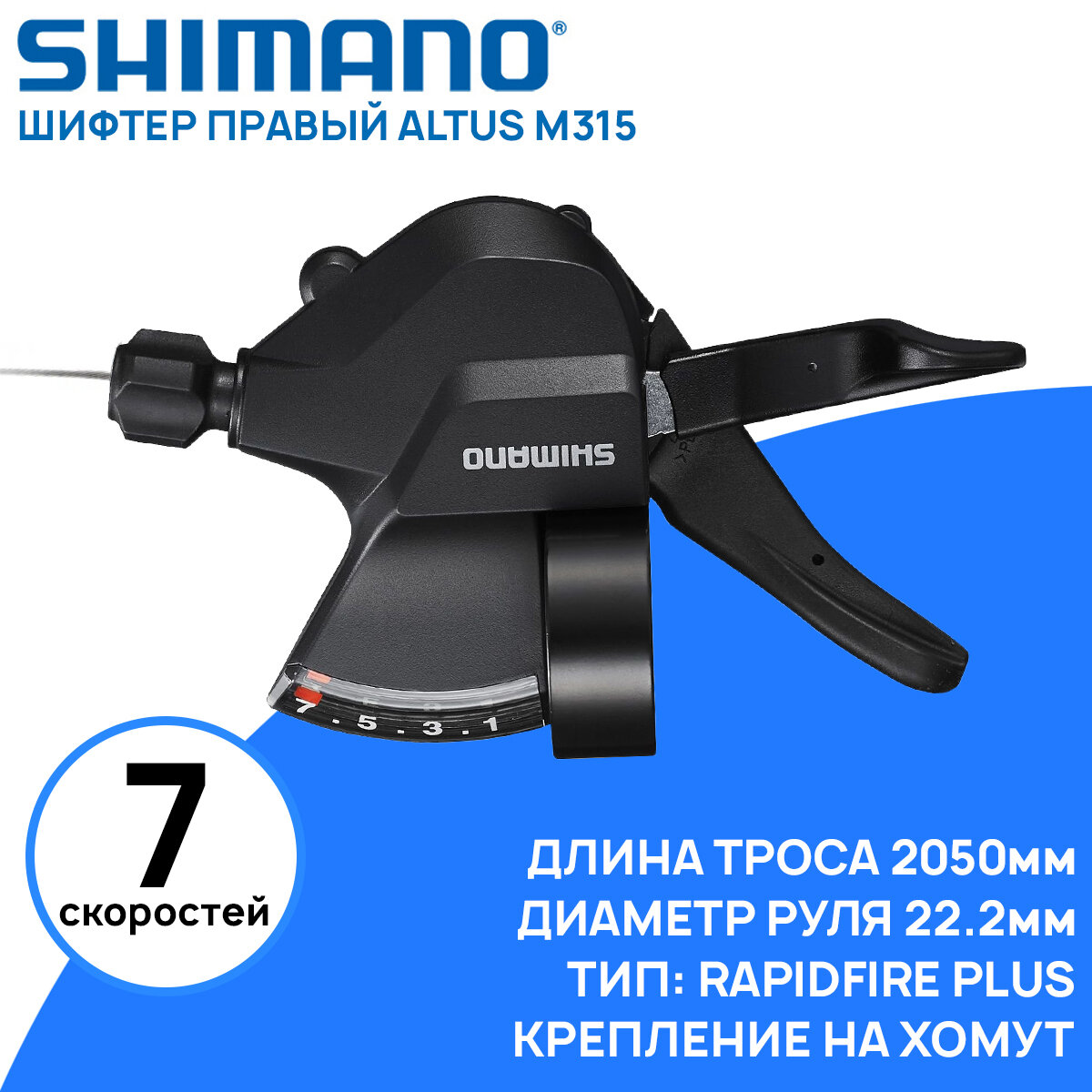 Шифтер Shimano Altus, M315, прав, 7ск, тр. 2050мм интересное: