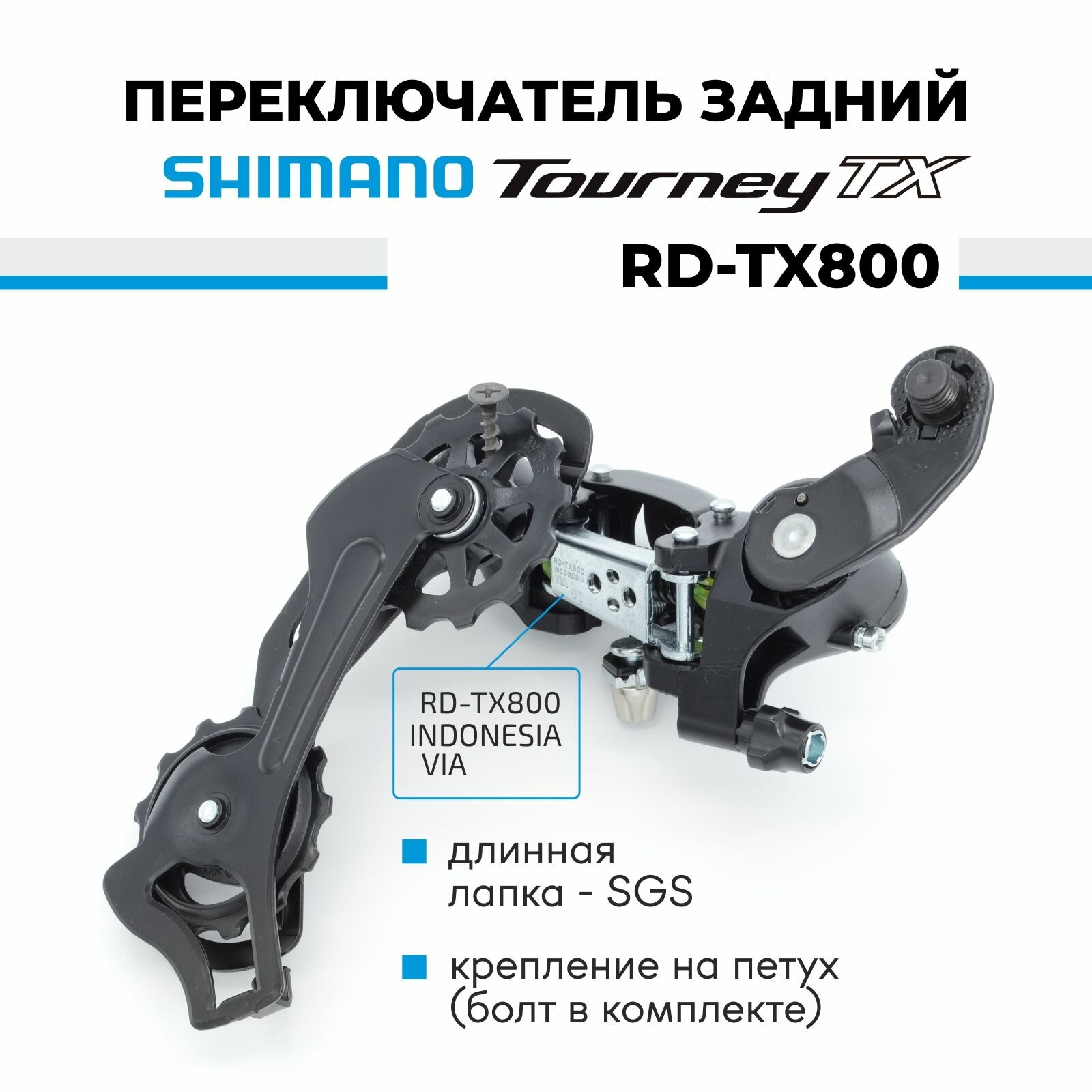 Переключатель задний для велосипеда Shimano Tourney RD-TX800, 7/8 скоростей, крепление на петух интересное:
