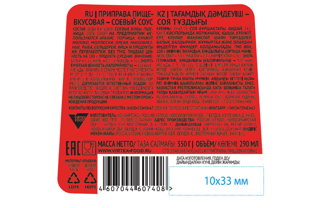 | Состав | вода питьевая, соевые бобы, пшеница, соль, сахар. На предприятии используются арахис, горчица, кунжут, молоко, моллюски, орехи, ракообразные, рыба, сельдерей, яйца и продукты их переработки. |