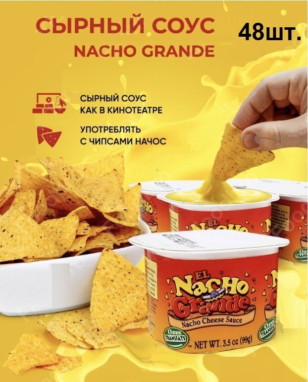 Сырный соус для начос Nacho Grande, к чипсам, к картошке фри, соус для чипсов начос и тортильи 48 шт. интересное: