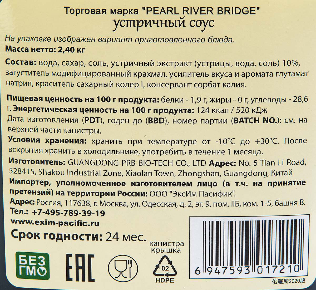 Соус устричный PRB, 2,40 кг пл/бут. интересное:
