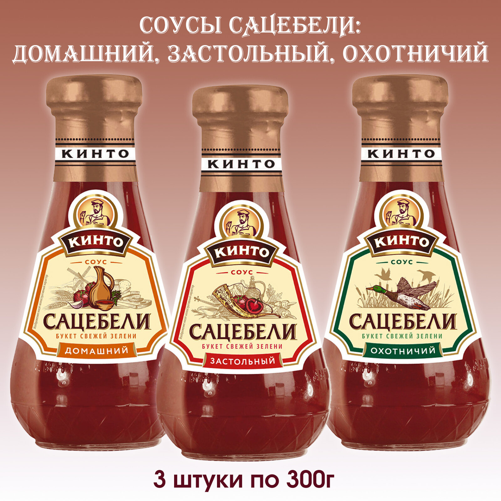 Набор соусов Кинто: Сацебели Домашний, Застольный, Охотничий, 3 штуки по 300г. интересное: